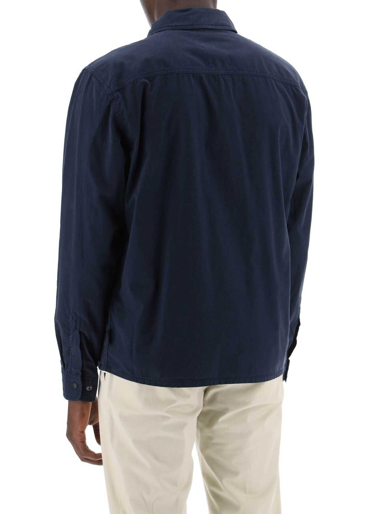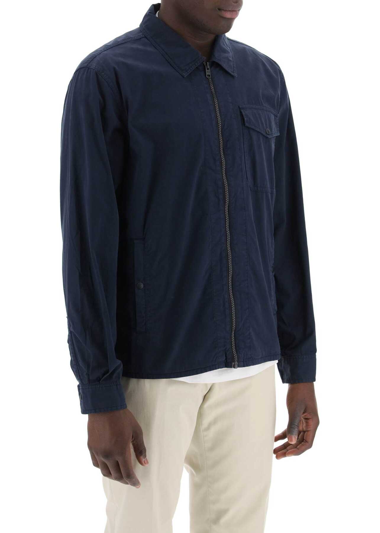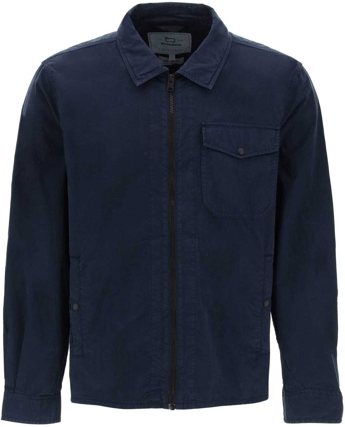The Woolrich Overshirt is made of pure cotton gabardine, dyed in a unique way. It features a classic pointed collar and zip closure. The chest pocket has a flap and button, while the side pockets have snap closures. The cuffs are adjustable and there is a back yoke. The fit is regular. The model is 187 cm tall and wears size L.