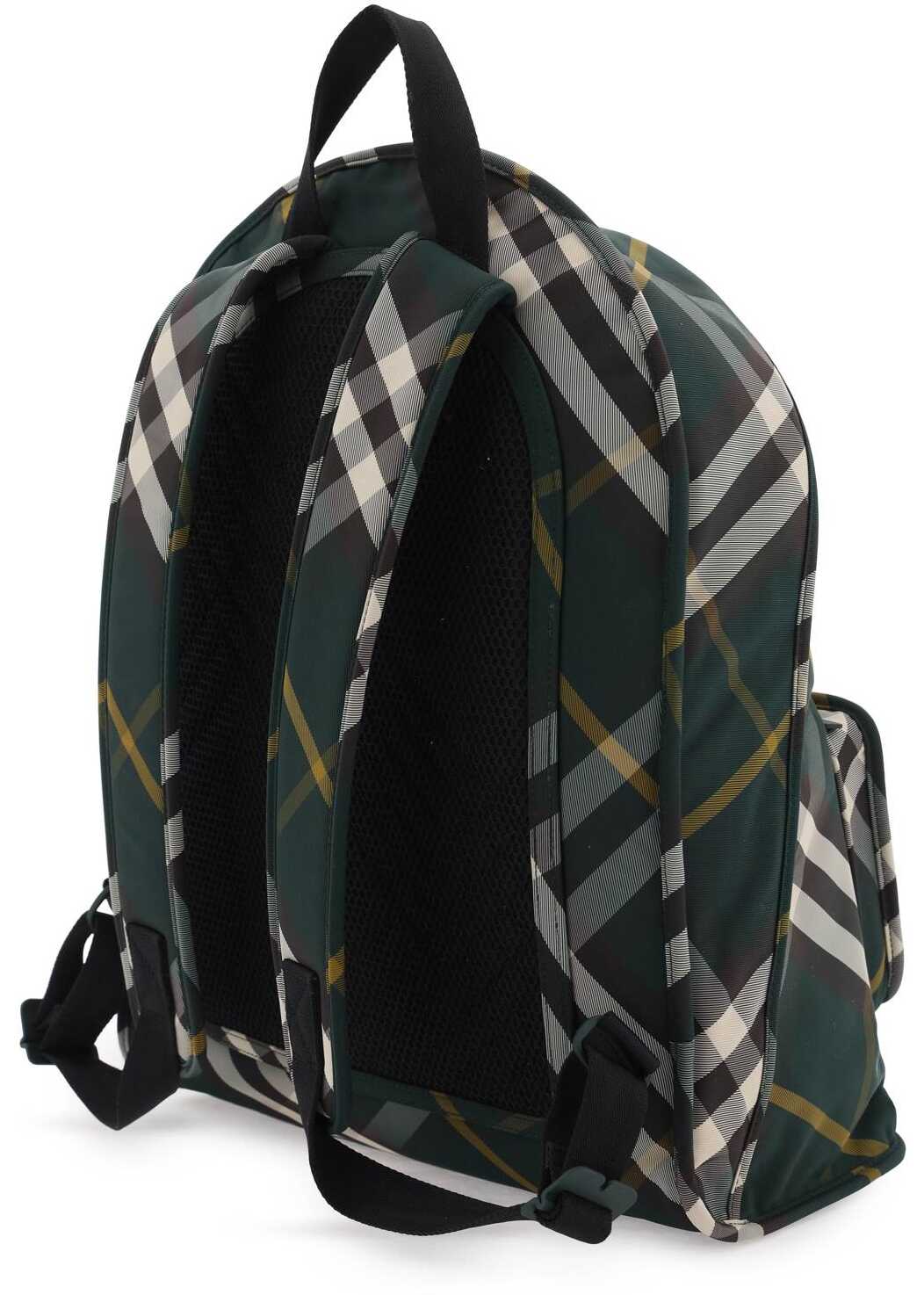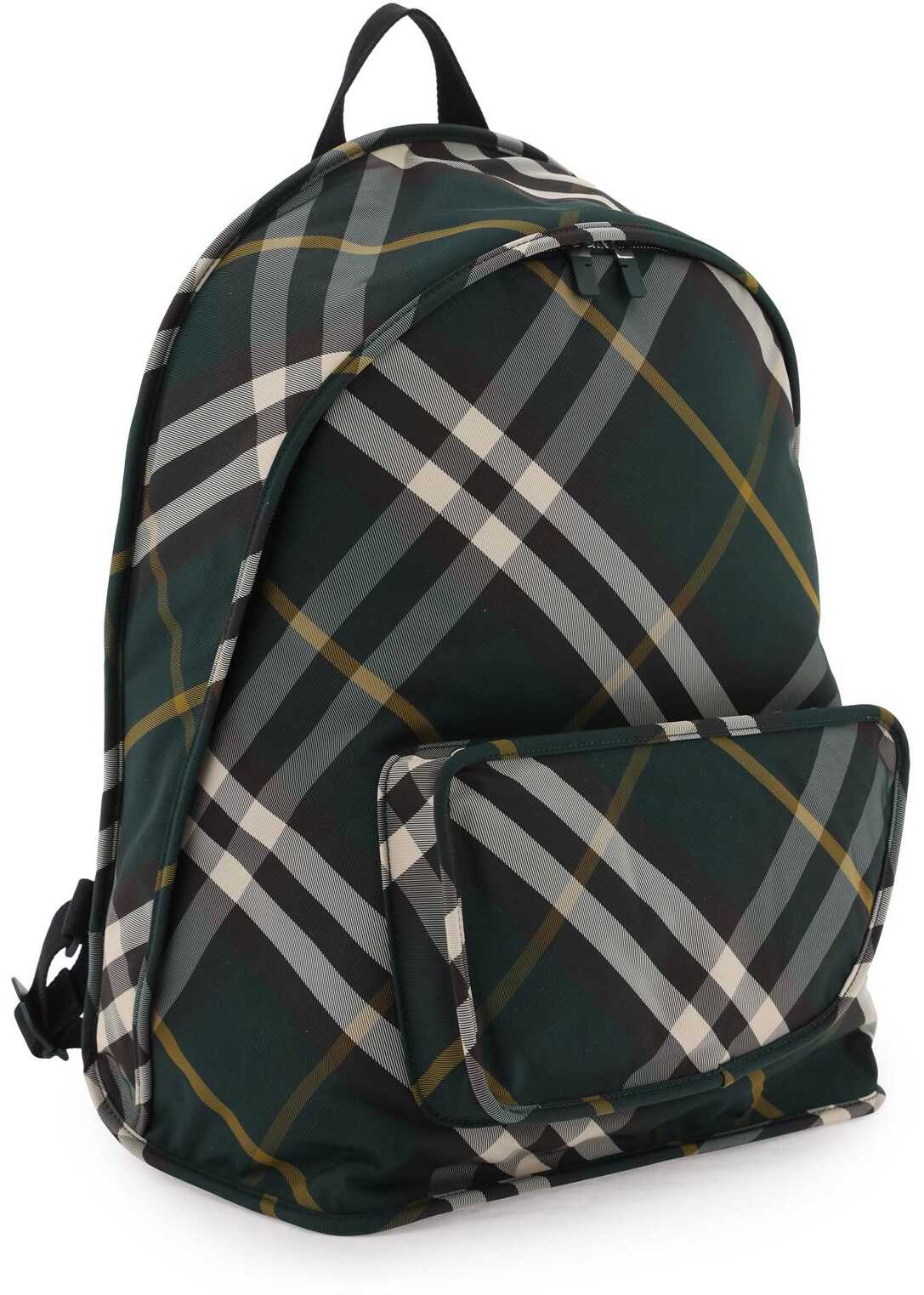 The Burberry Shield backpack is made of nylon with the iconic Burberry Check pattern. It features a main compartment with a double zip closure, lined interior with an open pocket and a front shield-shaped folded pocket. The back is padded with mesh, adjustable shoulder straps and a handle in ribbon.
