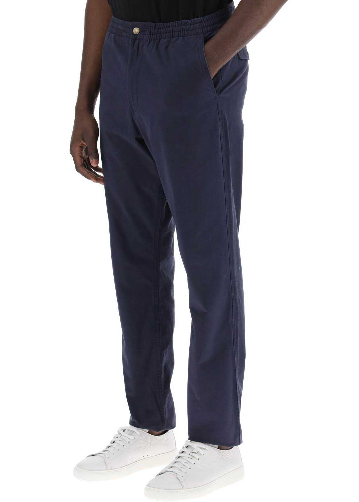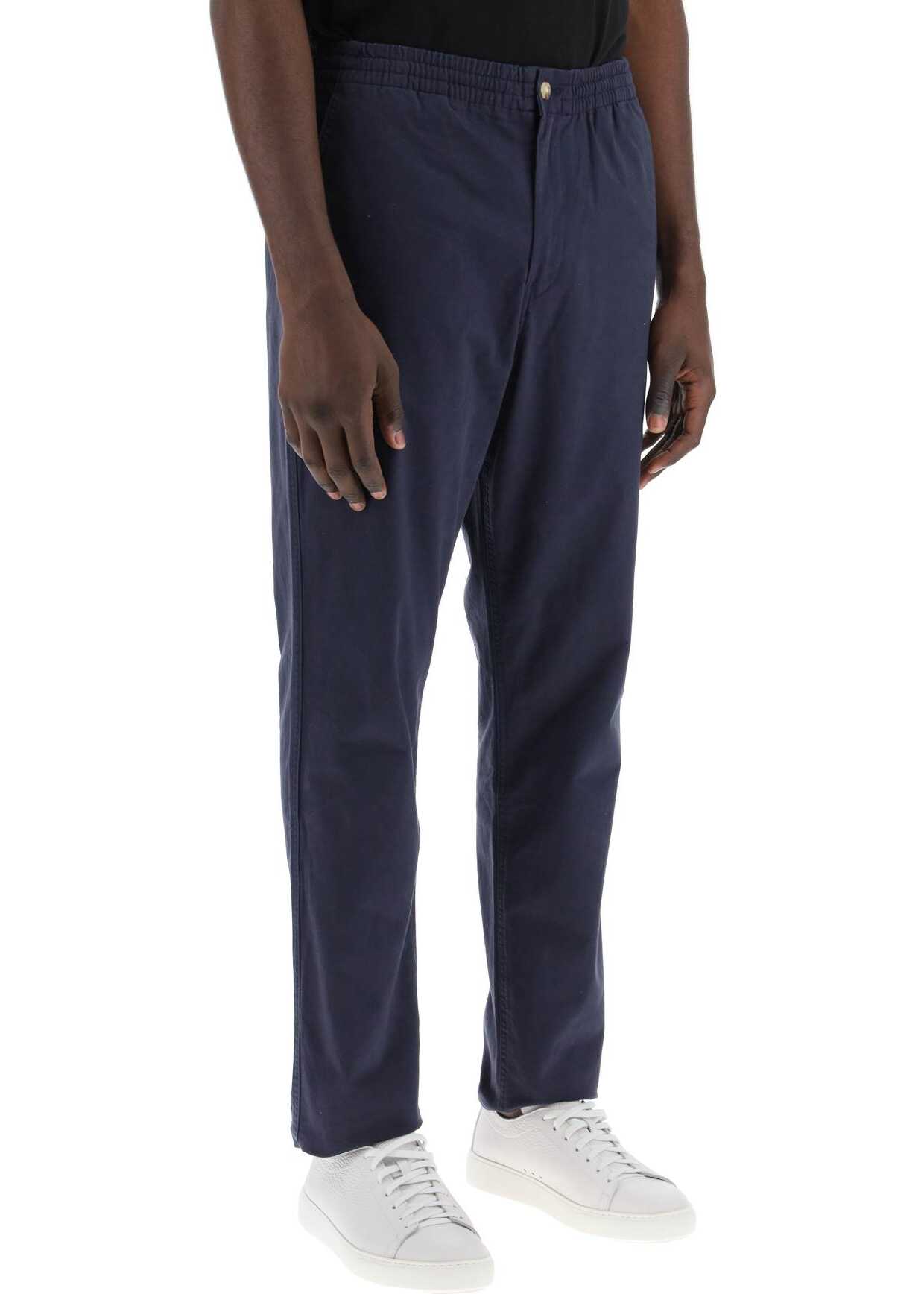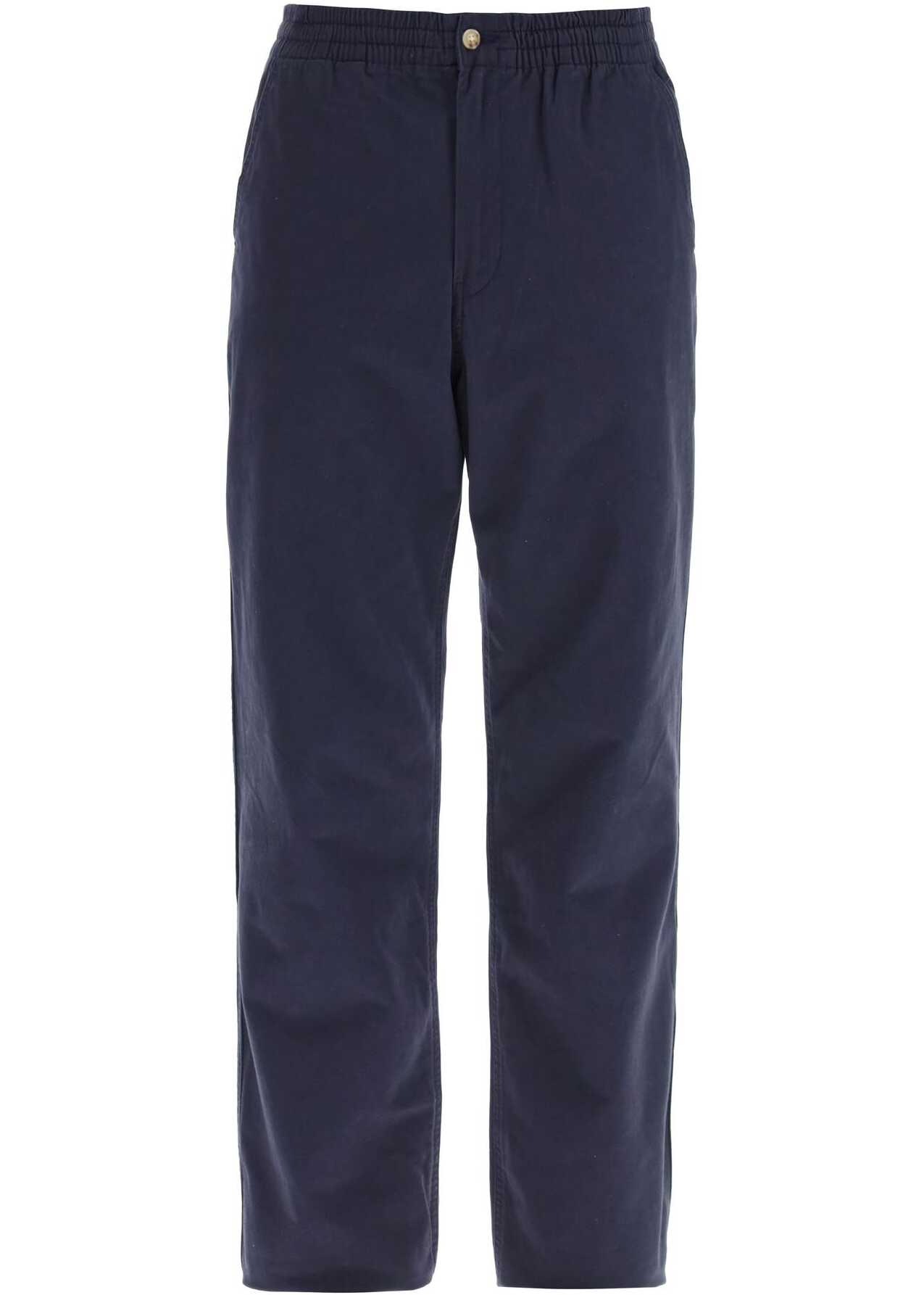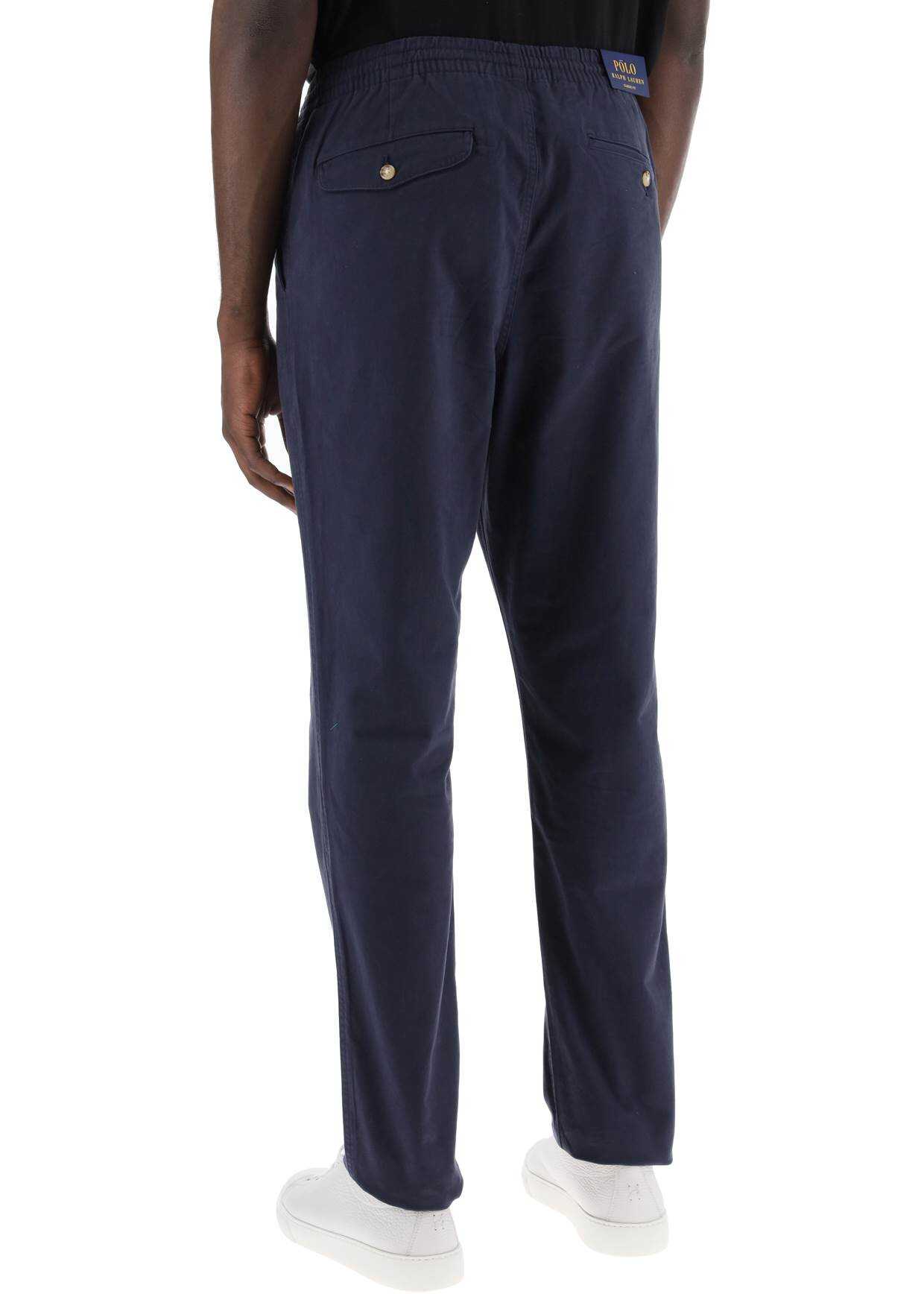 The Prepster Polo Ralph Lauren pants are made of stretch cotton gabardine, with a wide waist and relaxed fit on the legs. They feature a hidden zip and button closure, an elasticated waistband with internal drawstring, slanted front pockets, and flap back pockets with buttons. Finished with the iconic tonal embroidered pony on the back. The model is 187 cm tall and wears size L.
