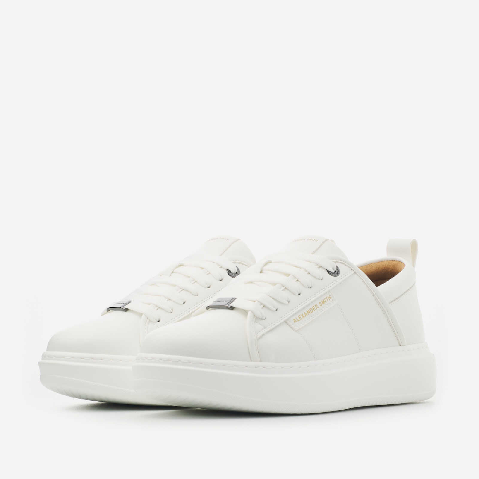 Sneakers Alexander Smith modello Eco-Wembley.Realizzata in eco pelle bianca.Suola in gomma riciclata.Logo laterale e suola in gomma riciclata per un'altezza totale di cm 4.Calzata regolare.