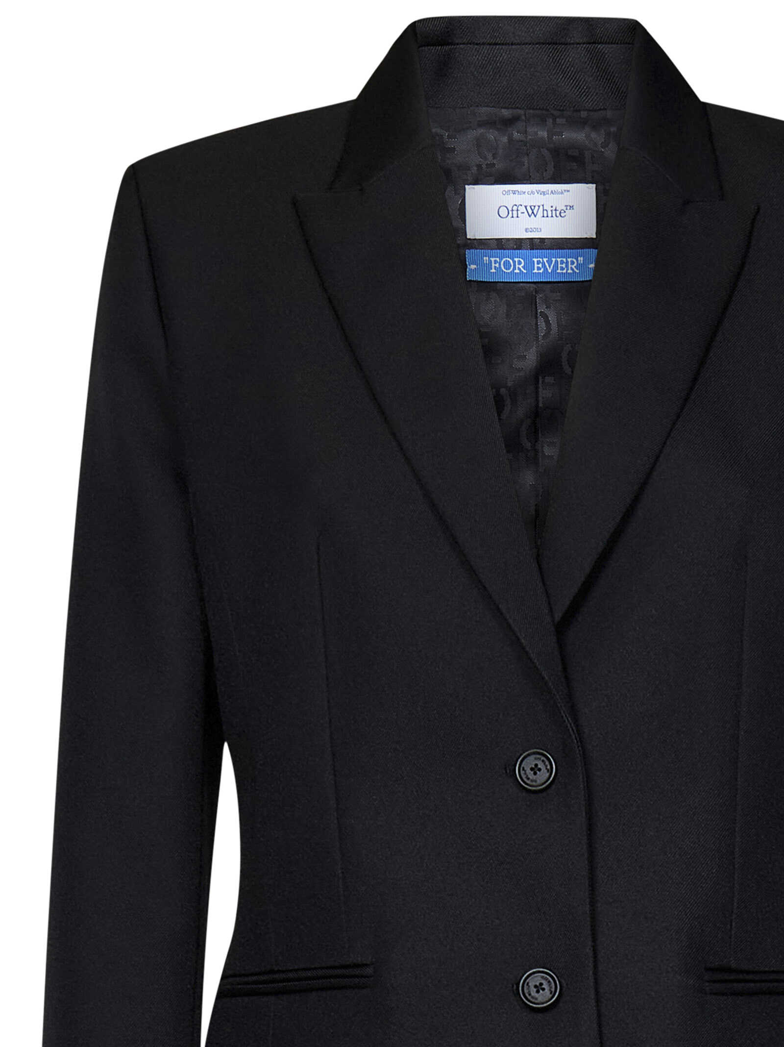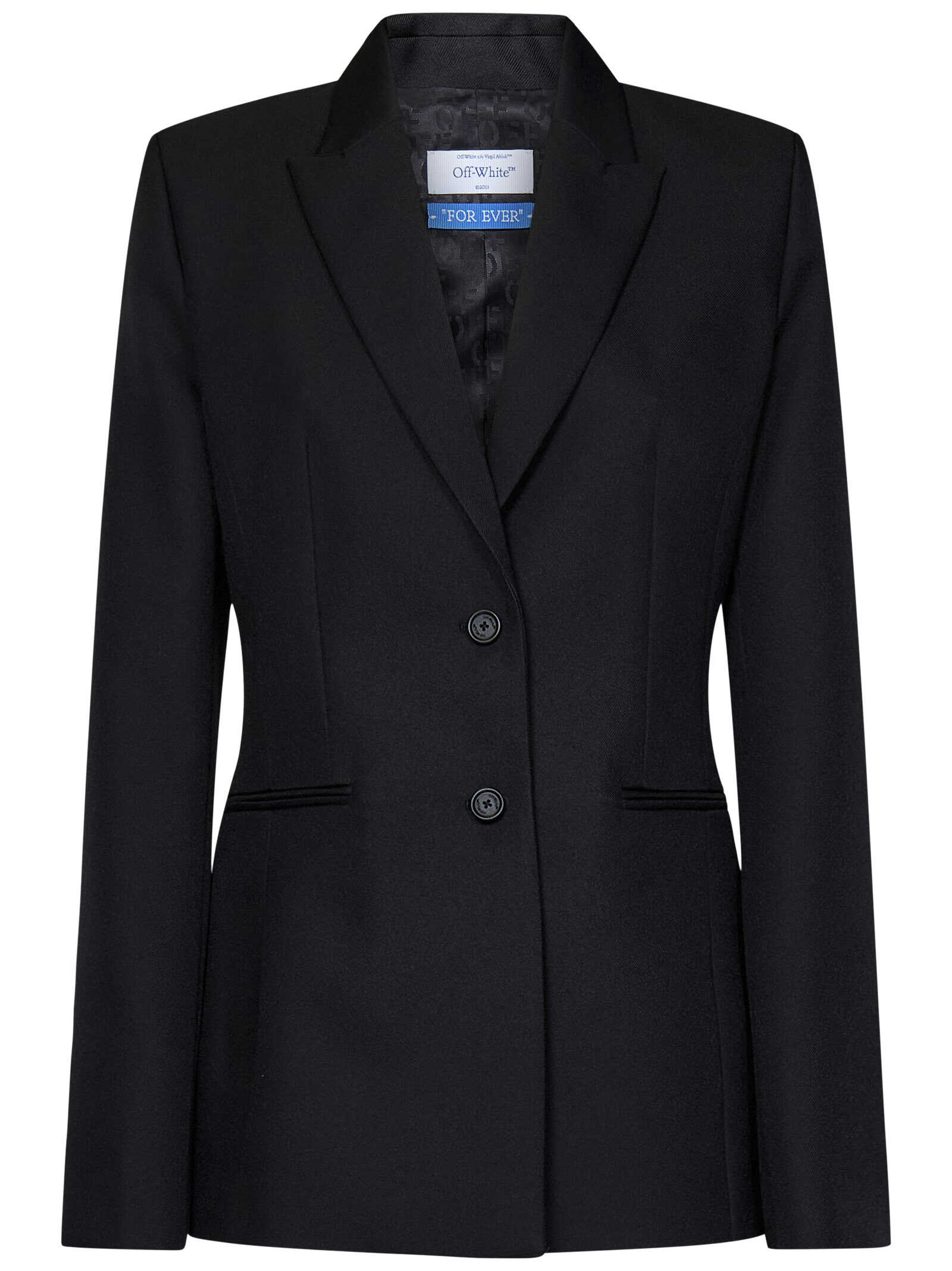 Single-breasted blazer in black technical jersey with logo print on the back.