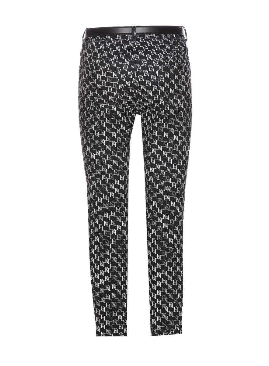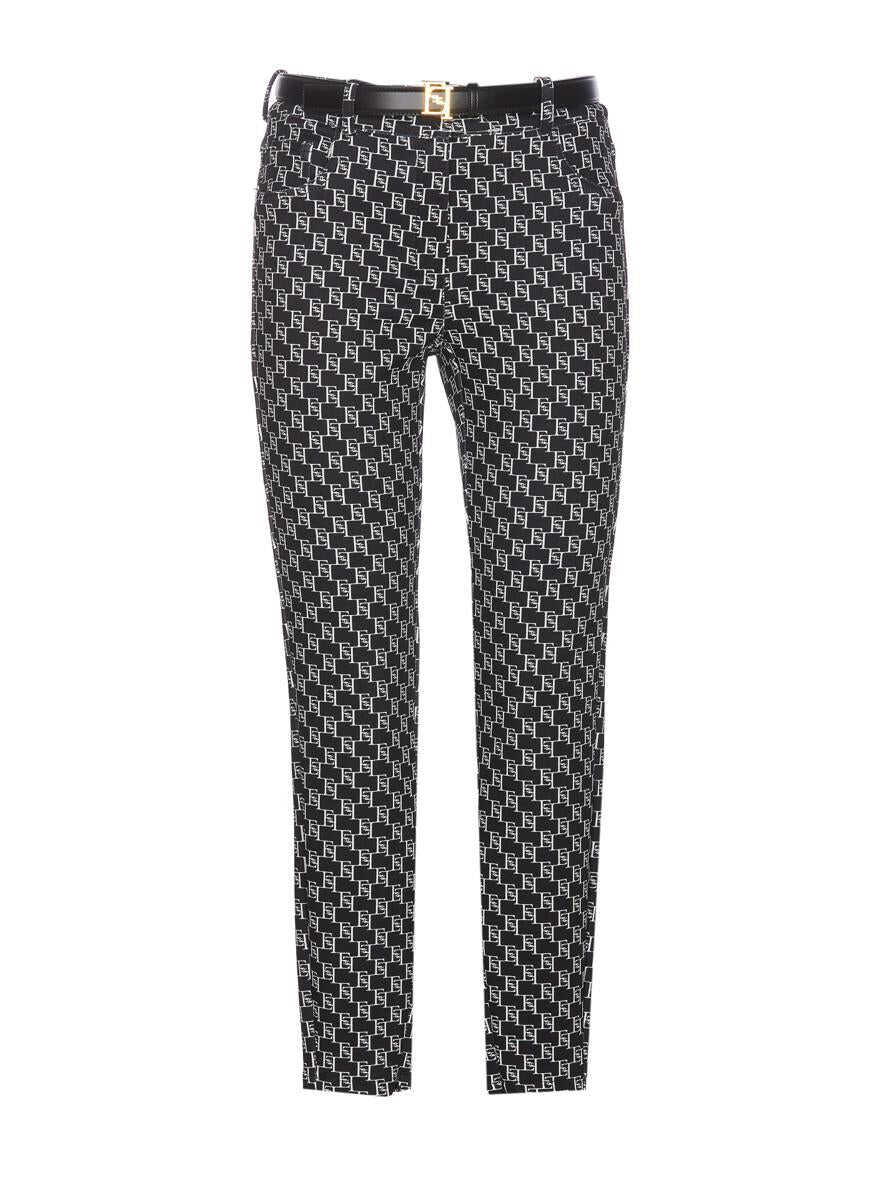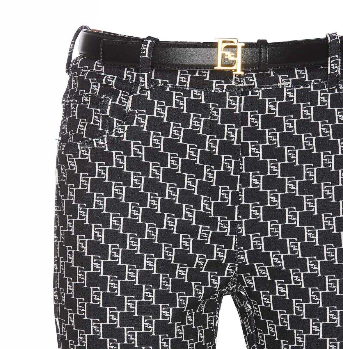 Elisabetta Franchi black and white, frontal zip and hook closure, all over print logo, belt closure on waist with plaque logo, skinny model, EU SIZE (IT)