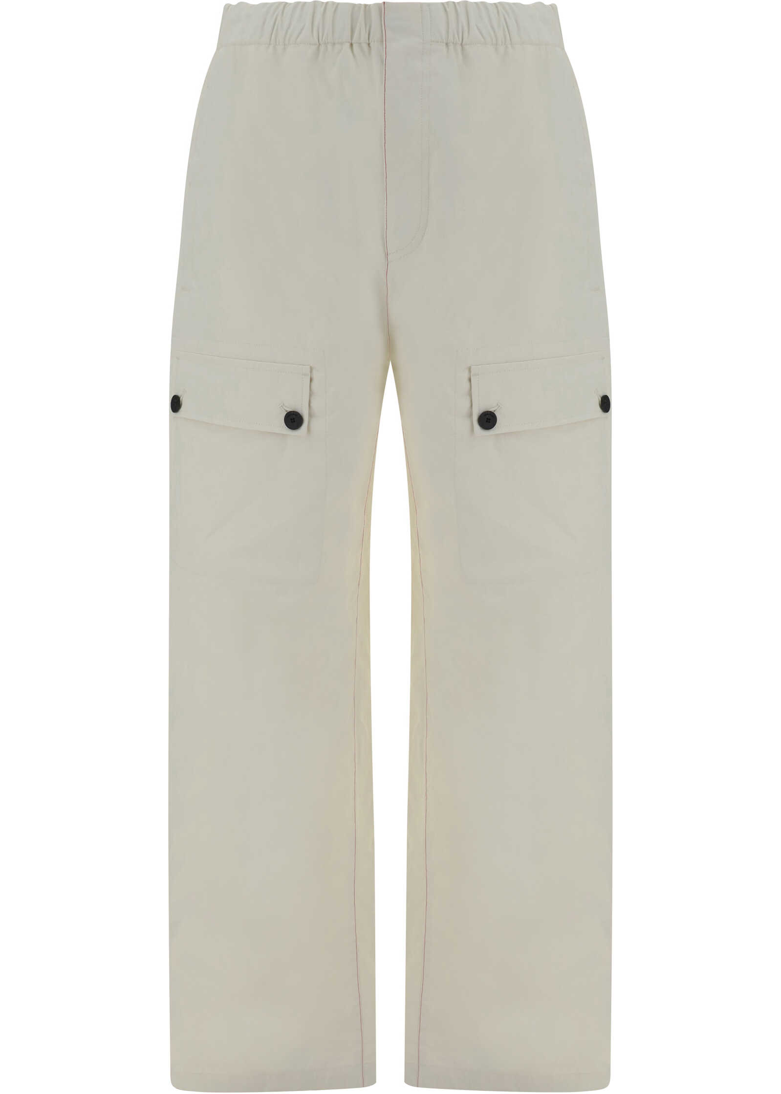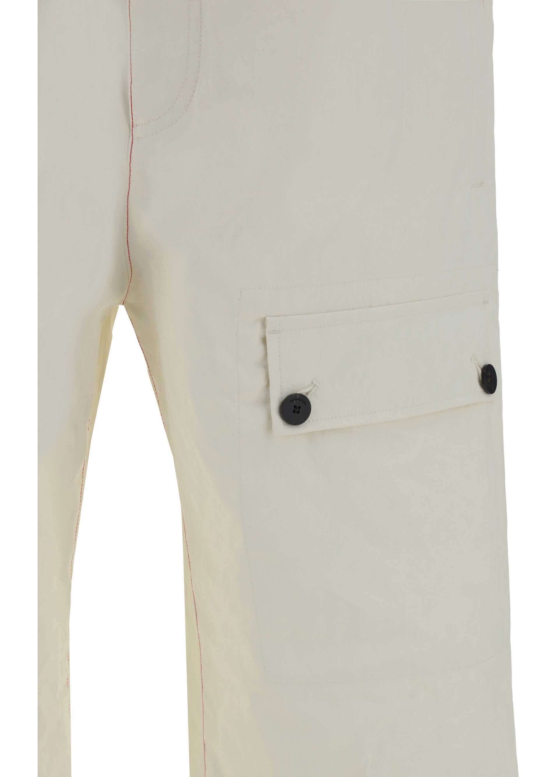 Linen Cargo Pants by Ferragamo, detail large patch pockets at side panels, elasticized waistband with front closure, two patch pockets at back, side slash pockets.