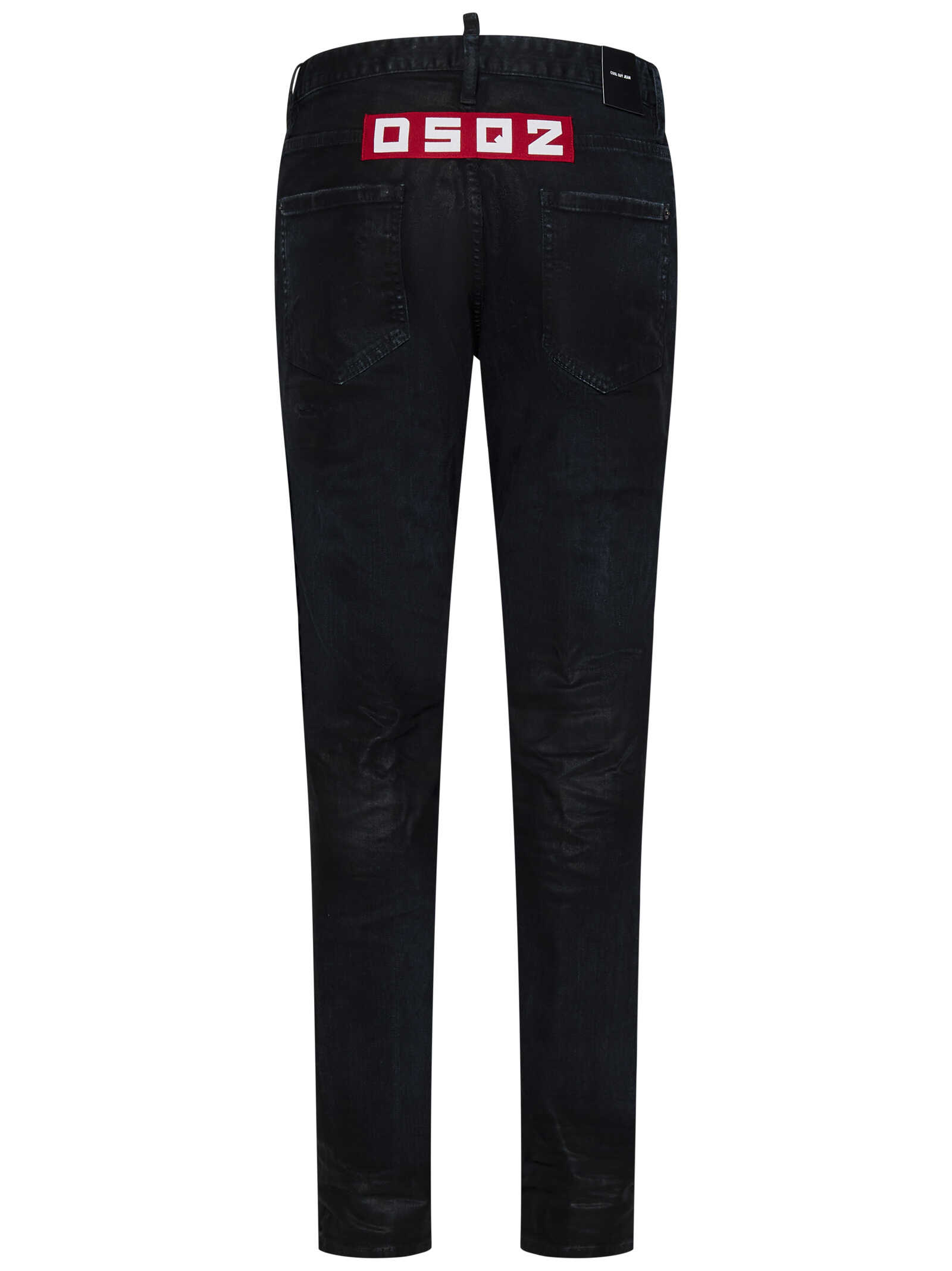 Black stretch cotton bull slim-fit jeans with logo patch at back and destroyed details.