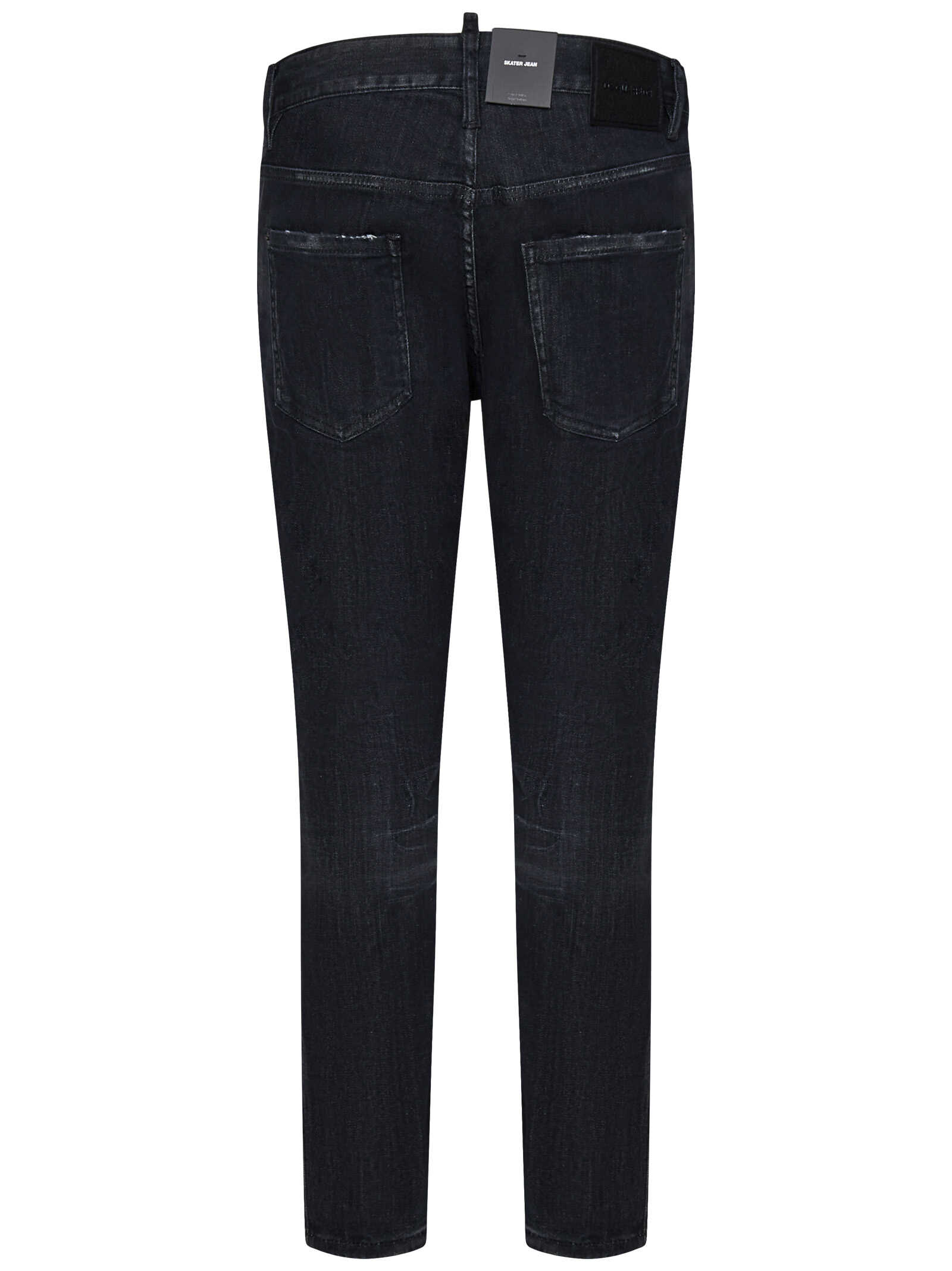 Slim-fit used-wash black stretch cotton denim jeans with destroyed details.