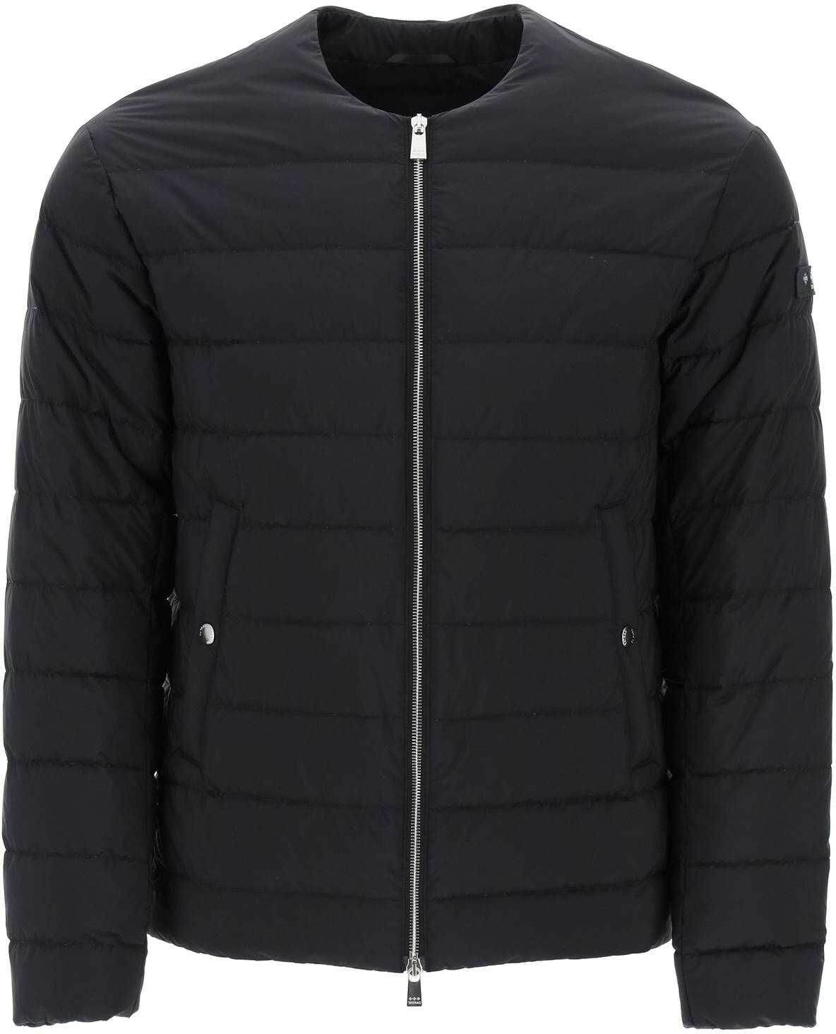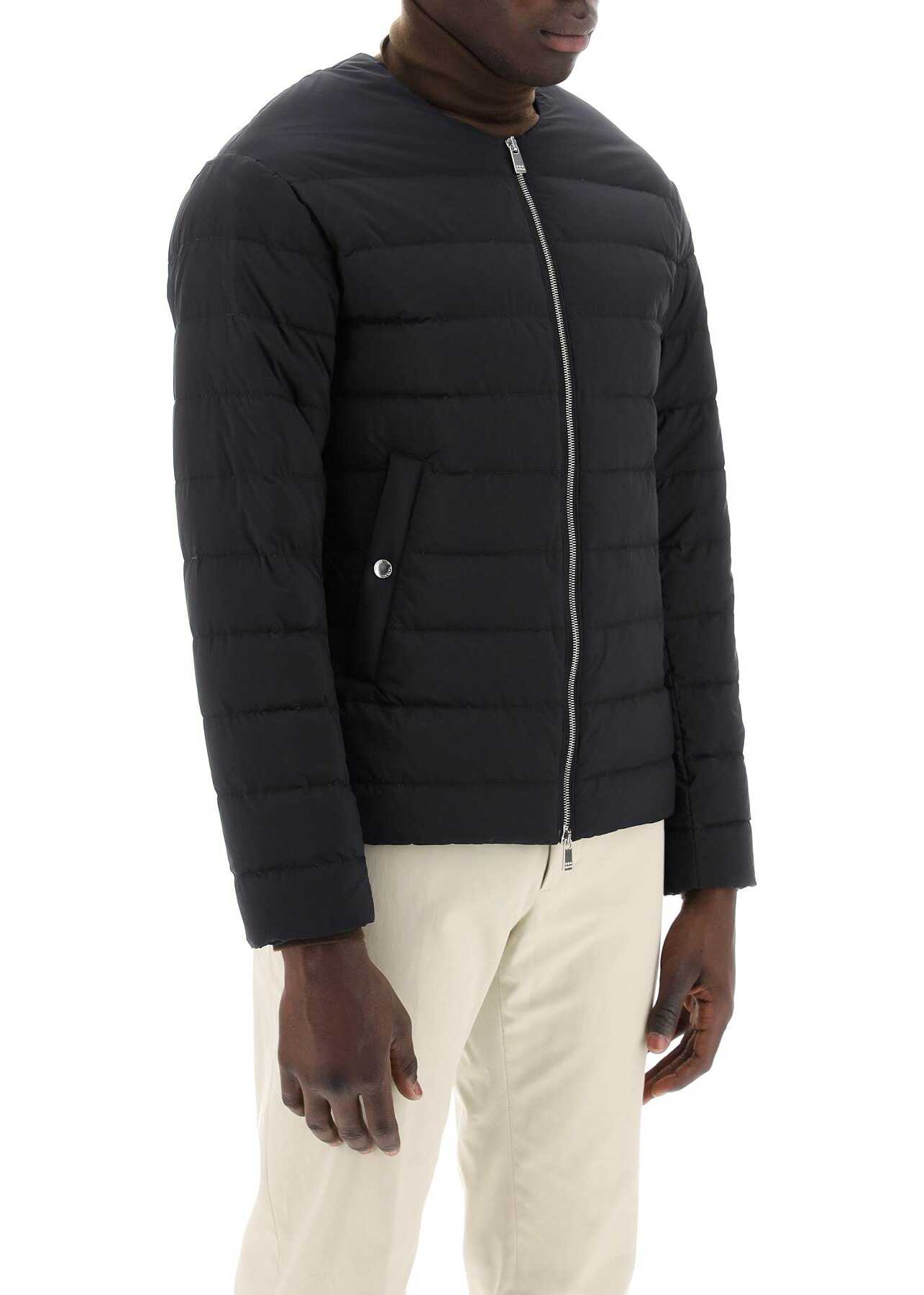 Short Ergico round-neck down jacket by Tatras, made of water-repellent quilted nylon with a matte finish and light padding in 90/10 goose down and feathers. It features a two-way zip closure, side pockets with hidden snap buttons, and elasticized cuffs. Signed with the characteristic logo patch on the sleeve. Regular fit. The model is 187 cm tall and wears a size 3 Tatras.