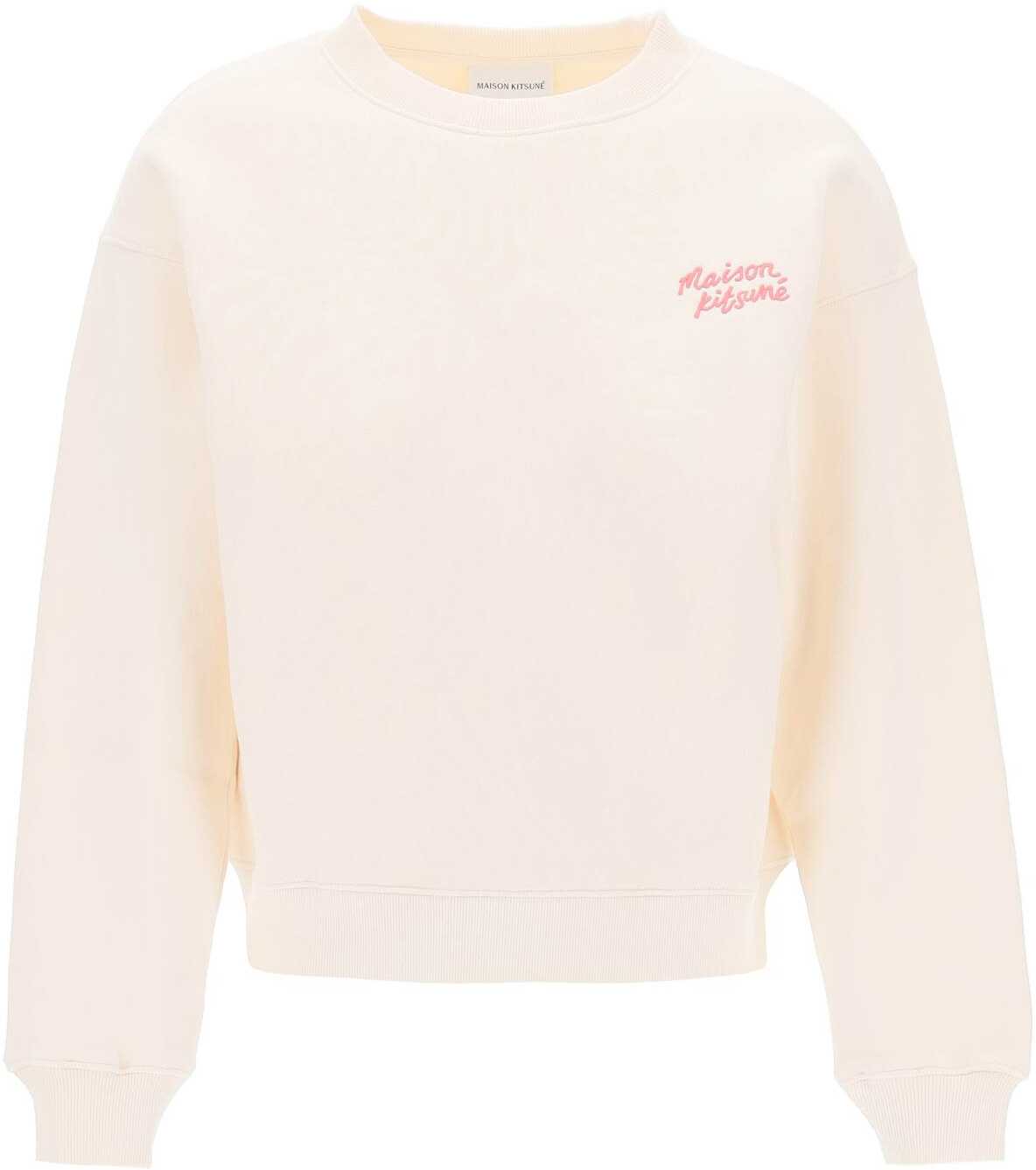 This Maison Kitsuné sweatshirt is made of soft, brushed cotton jersey and features the embroidered Handwriting logo in tone on the chest. It has a crew neck, ribbed cuffs and hem, and a relaxed fit with dropped shoulders. The model is 177 cm tall and wears a size XS.