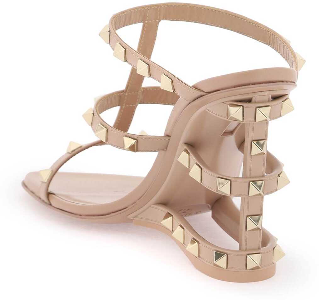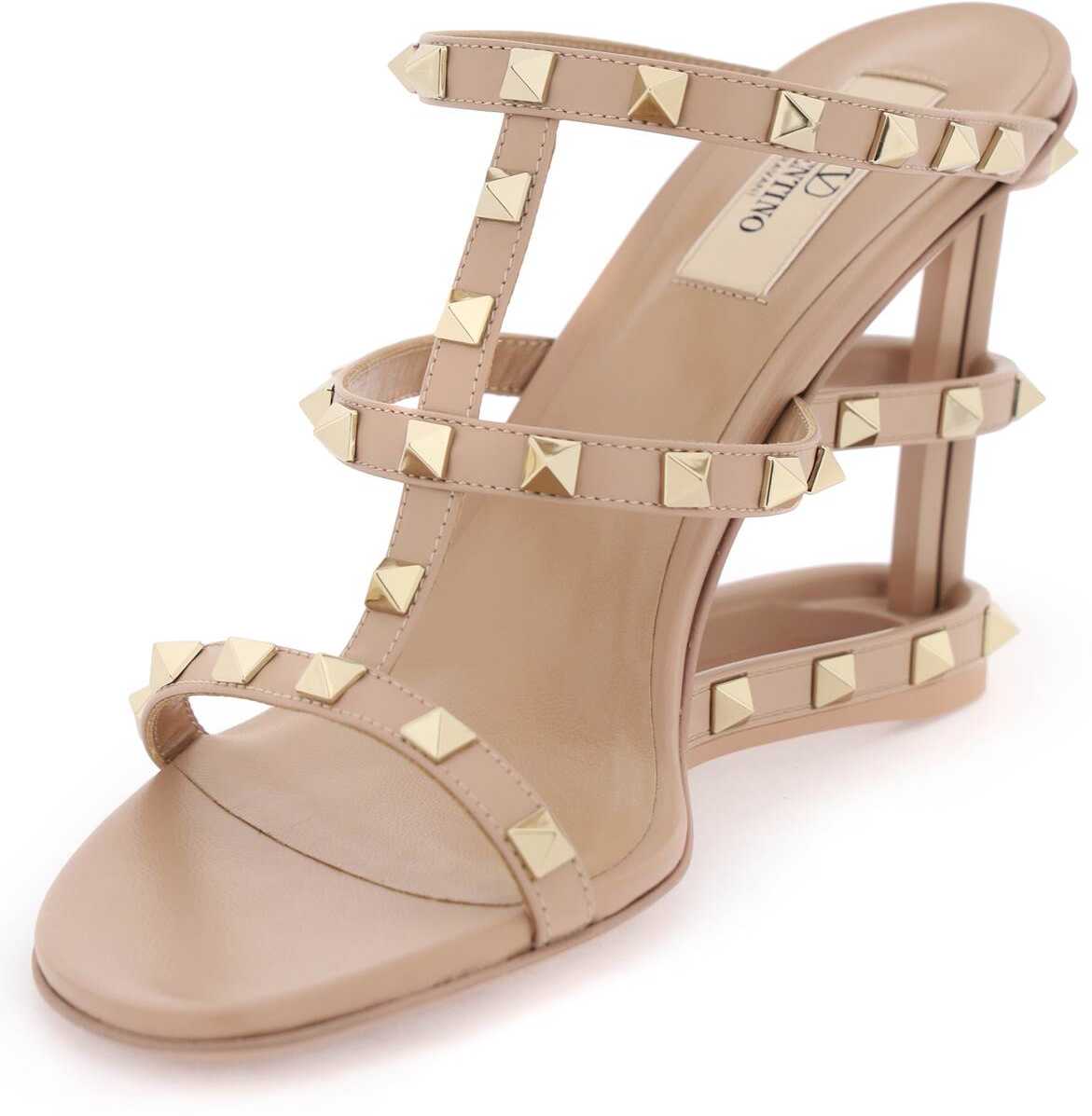 Valentino Garavani's mules are made of leather and feature a cut-out wedge with a cage effect. Iconic metal studs are applied, along with a leather insole and leather sole.