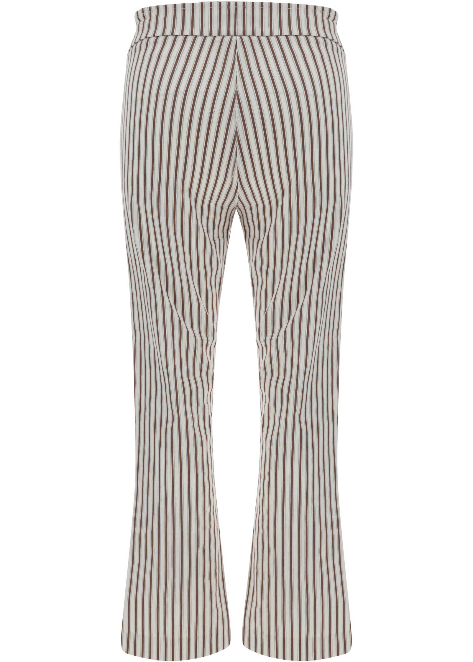 Pants by Avenue Montaigne, boot-cut pattern, vertical stripe pattern, close fit.