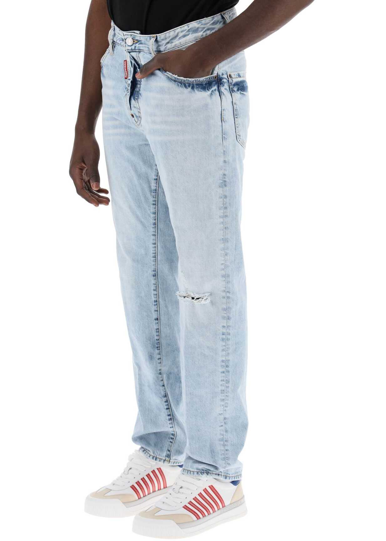 These Light Palm Beach Wash 642 DSquared2 five-pocket jeans are made of pure cotton denim with a bleached wash and finished with contrasting double-needle stitching and destroyed detail on the knee. They feature a button fly closure detailed with a logo label, a metallic leather back patch, and a regular fit. The model is 187 cm tall and wears an IT size 48.