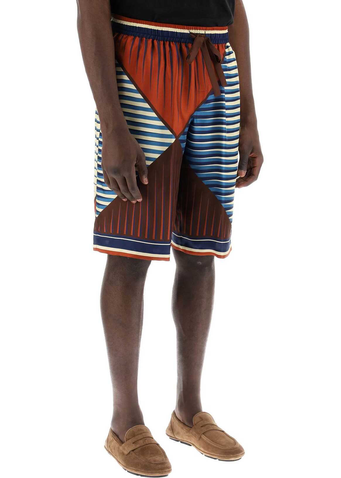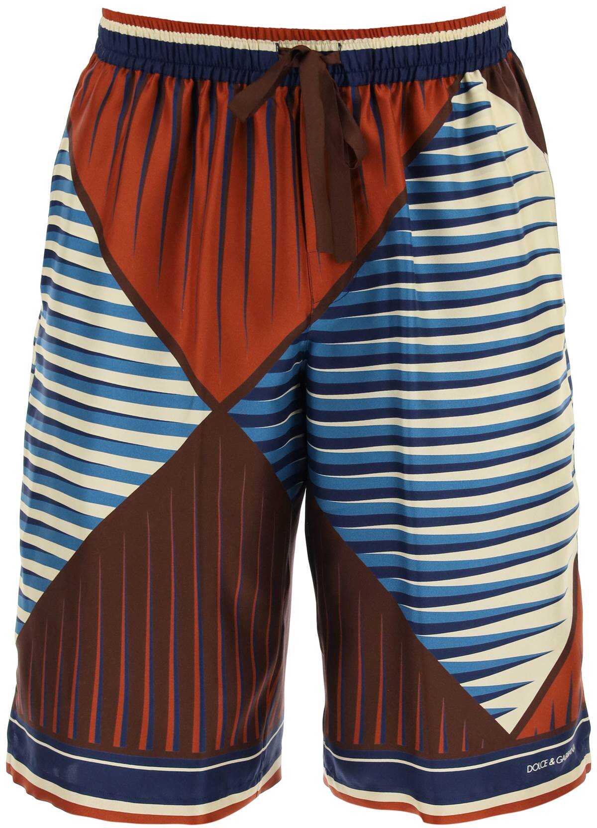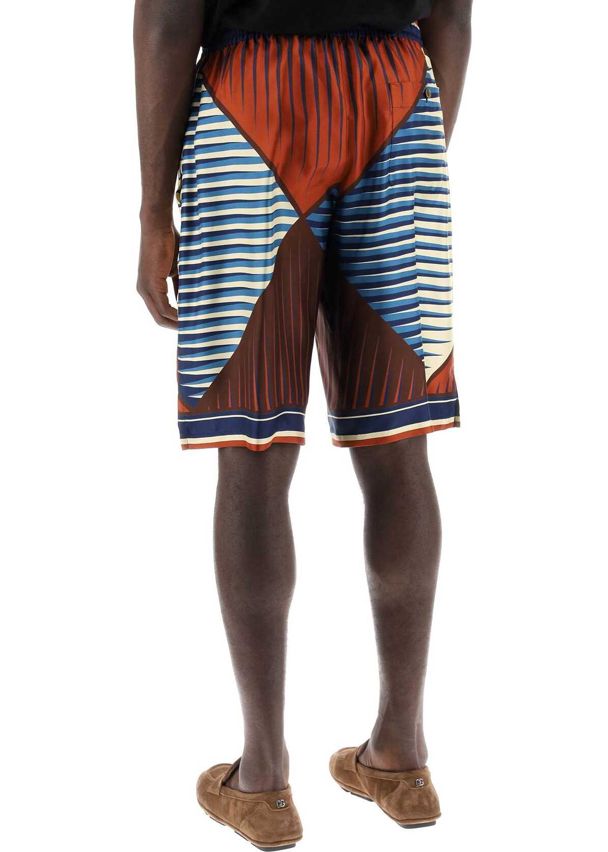 Dolce & Gabbana Bermuda shorts made of pure silk twill with an adjustable elastic waistband and drawstring, front French pockets, and a back patch pocket. Finished with side slits. The model is 187 cm tall and wears size IT 48.