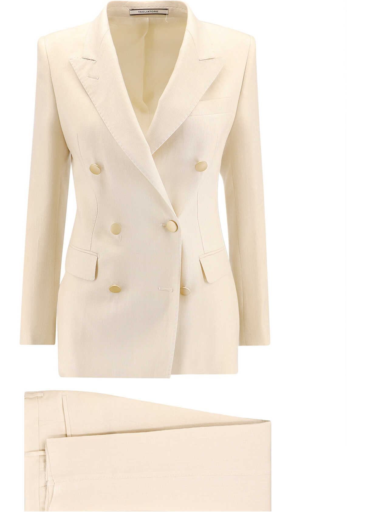 Linen tailleur with metal buttons