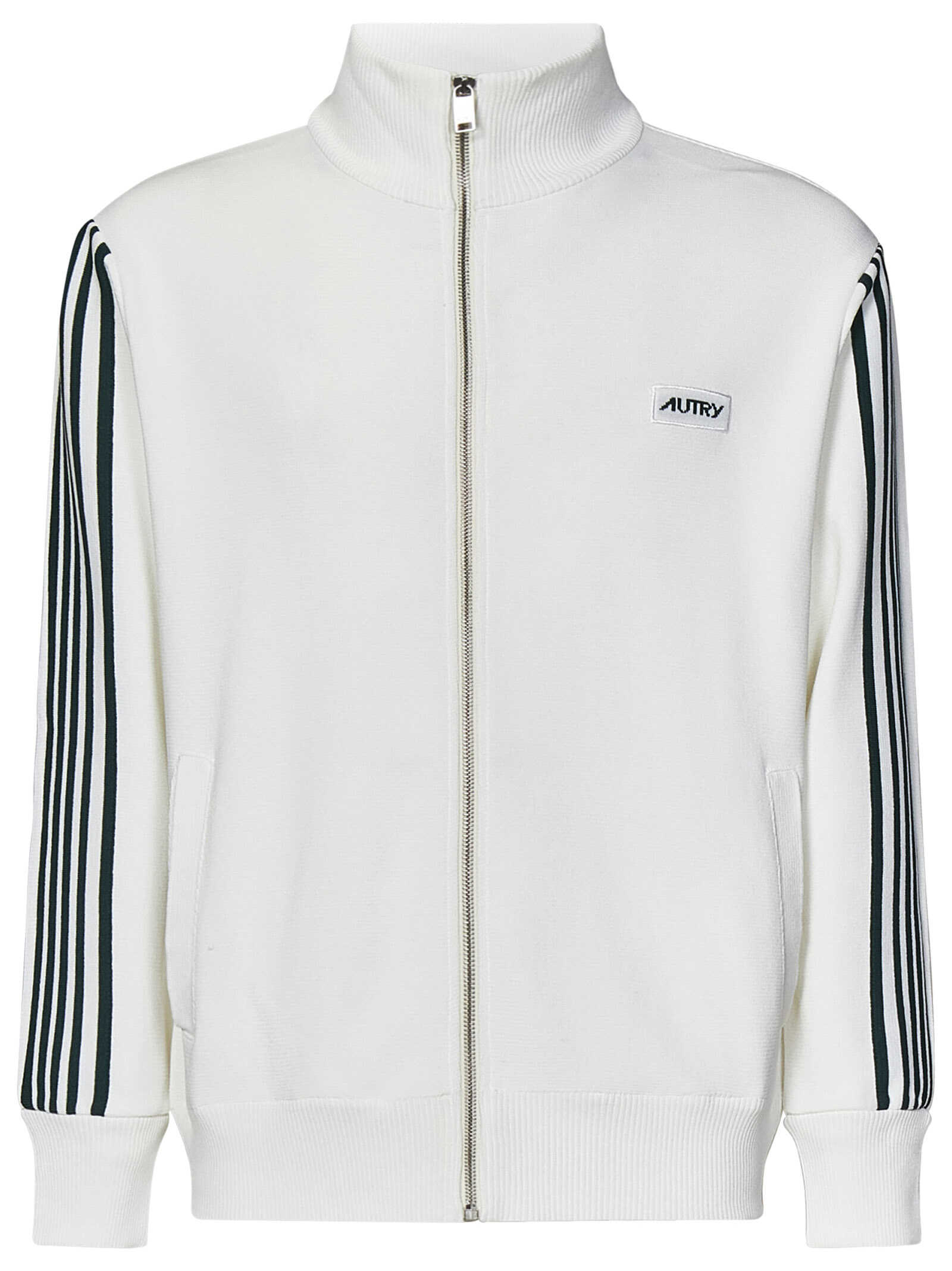 White viscose blend knit track jacket with contrasting side bands and logo.