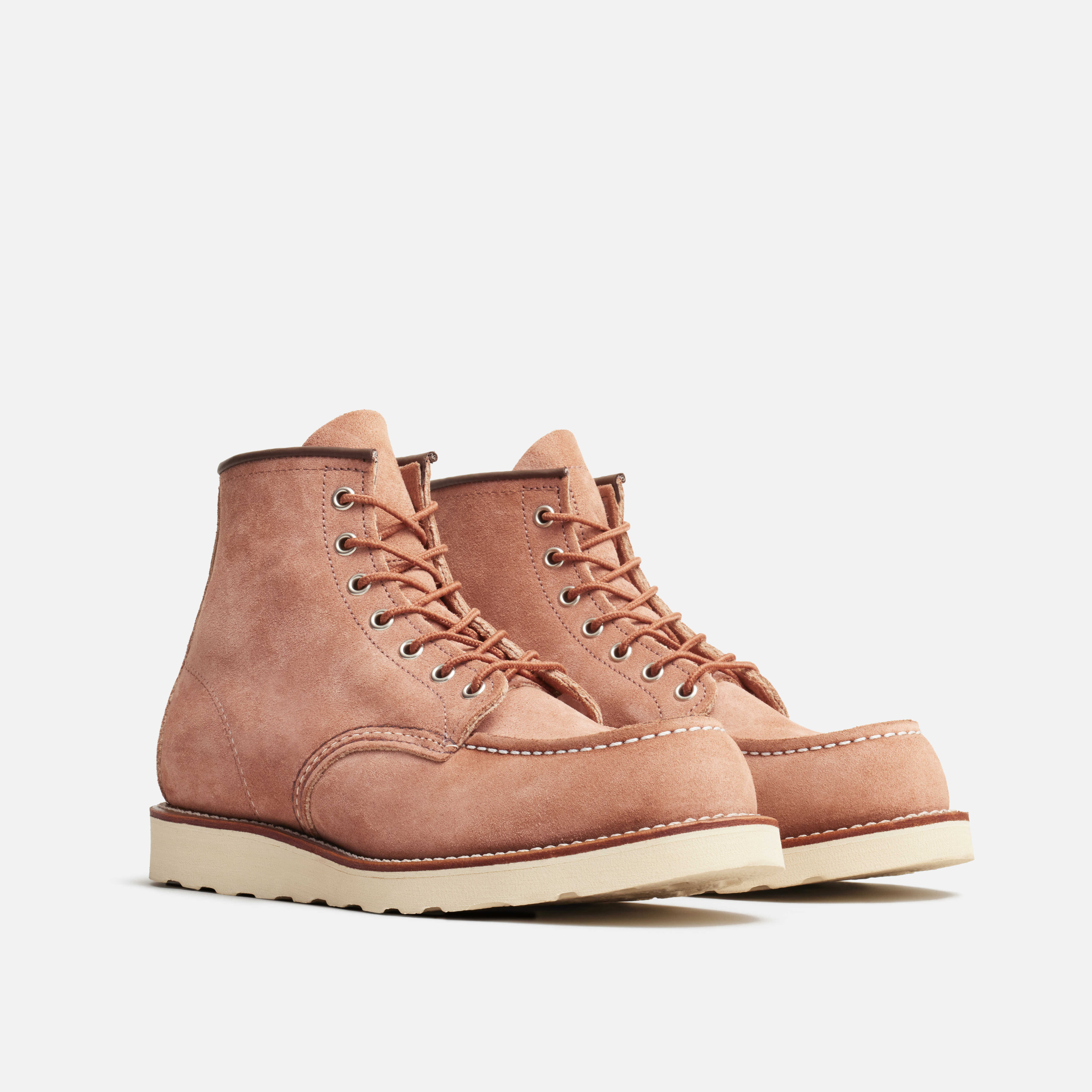"RED WING leather ankle boot with rubber sole, cotton laces, metal eyelets, visible stitching."