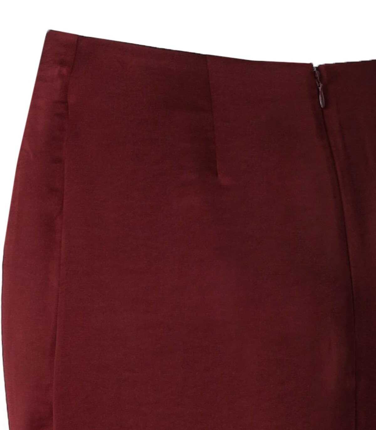 Essentiel Antwerp Fondue skirt is made of recycled polyester blend in burgundy. It features a front slit and a zip closure at the back. Soft fit.