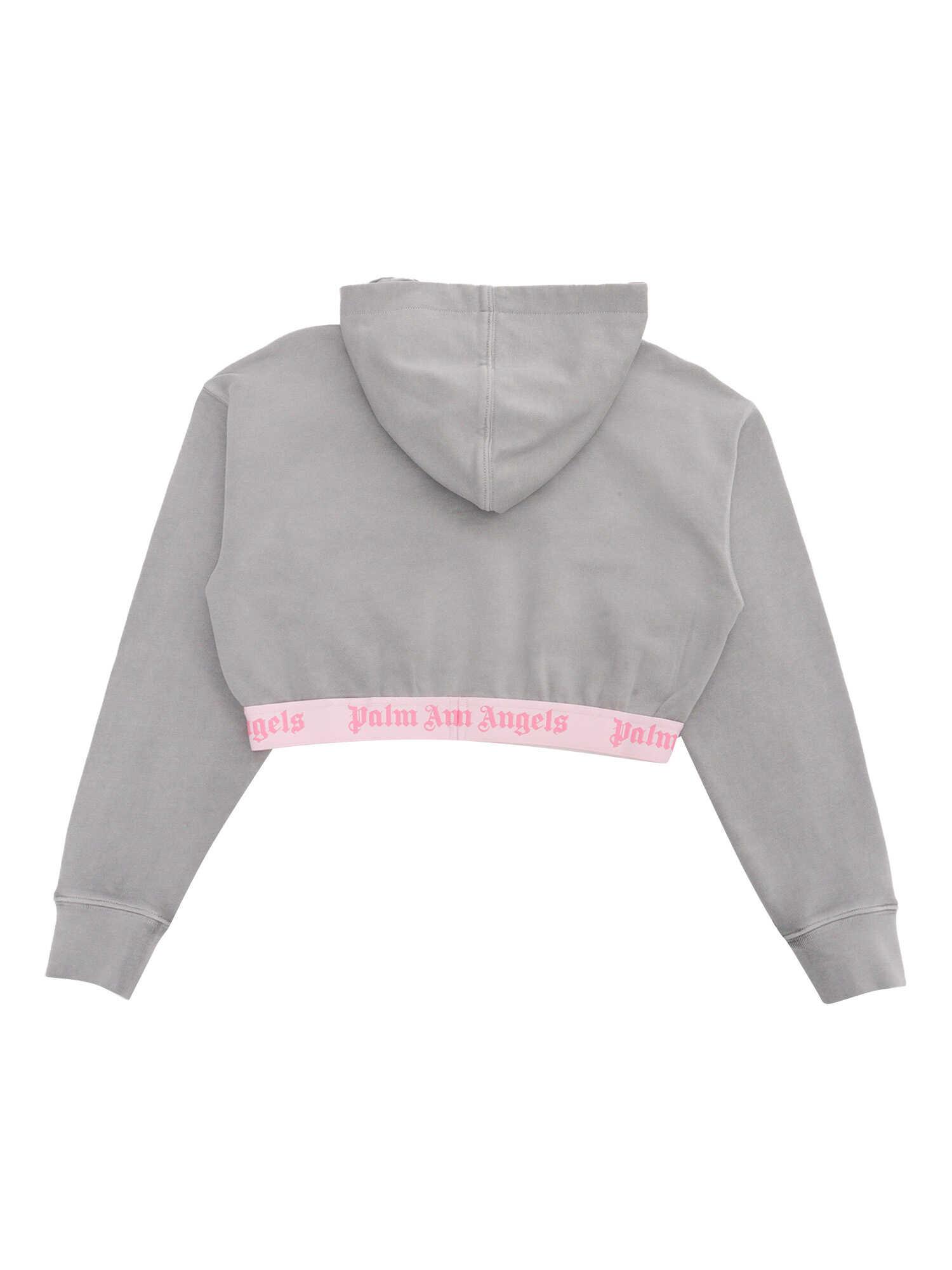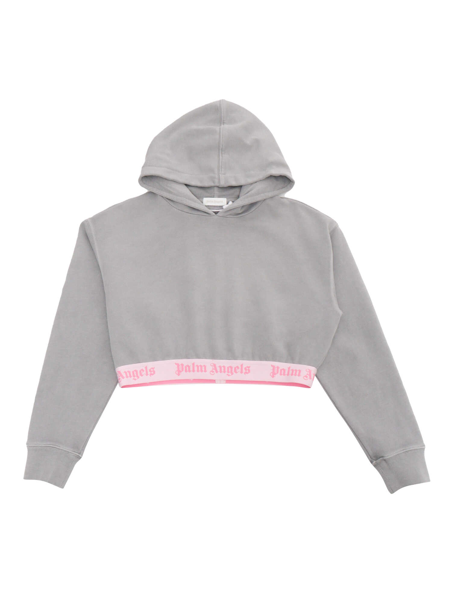 Palm Angels girls' cropped sweatshirt in cotton blend with hood and contrasting pink elastic band with logo.
