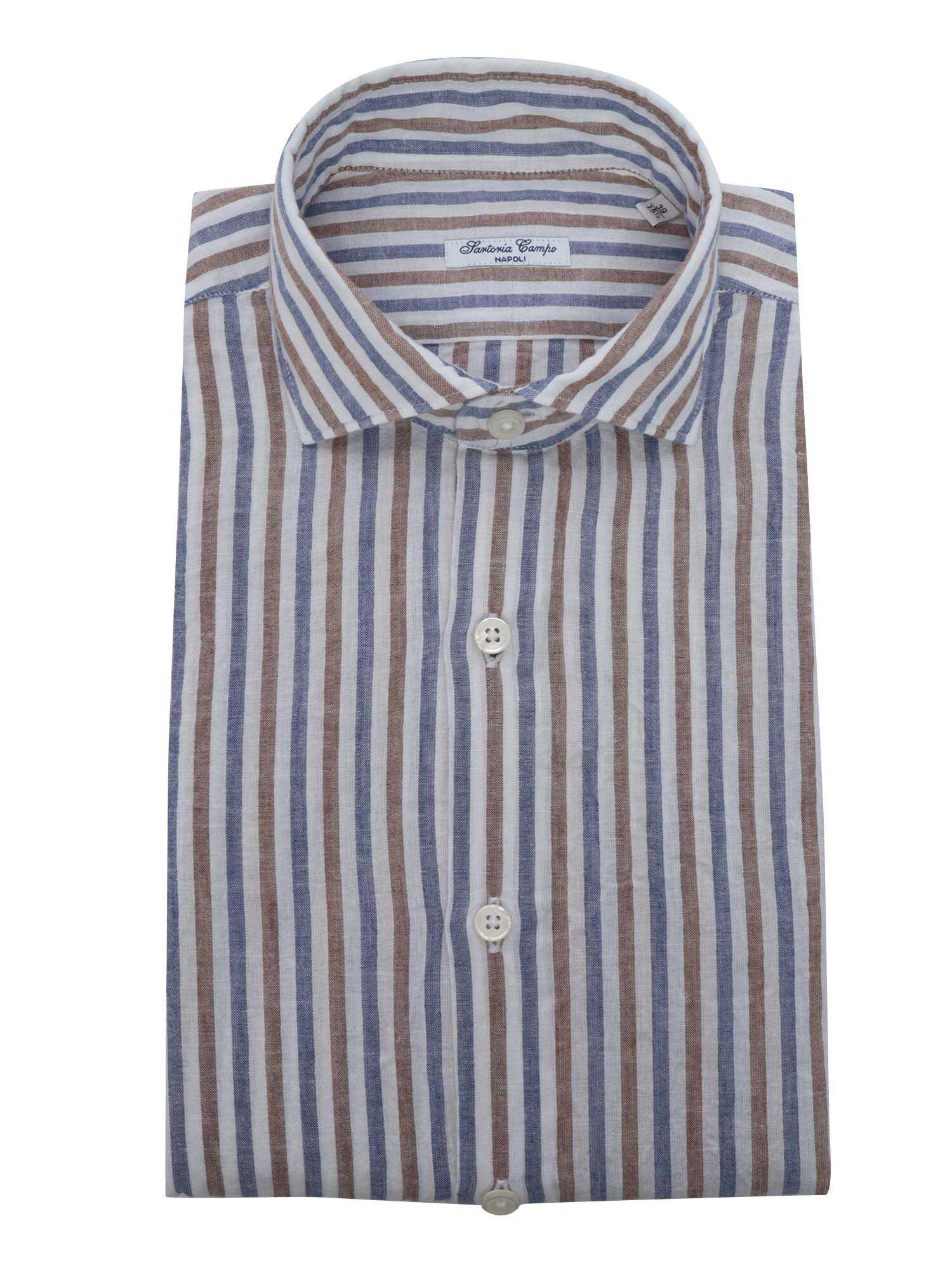Sonrisa men's blue and red striped shirt in linen and cotton blend, classic collar, front buttoning.
