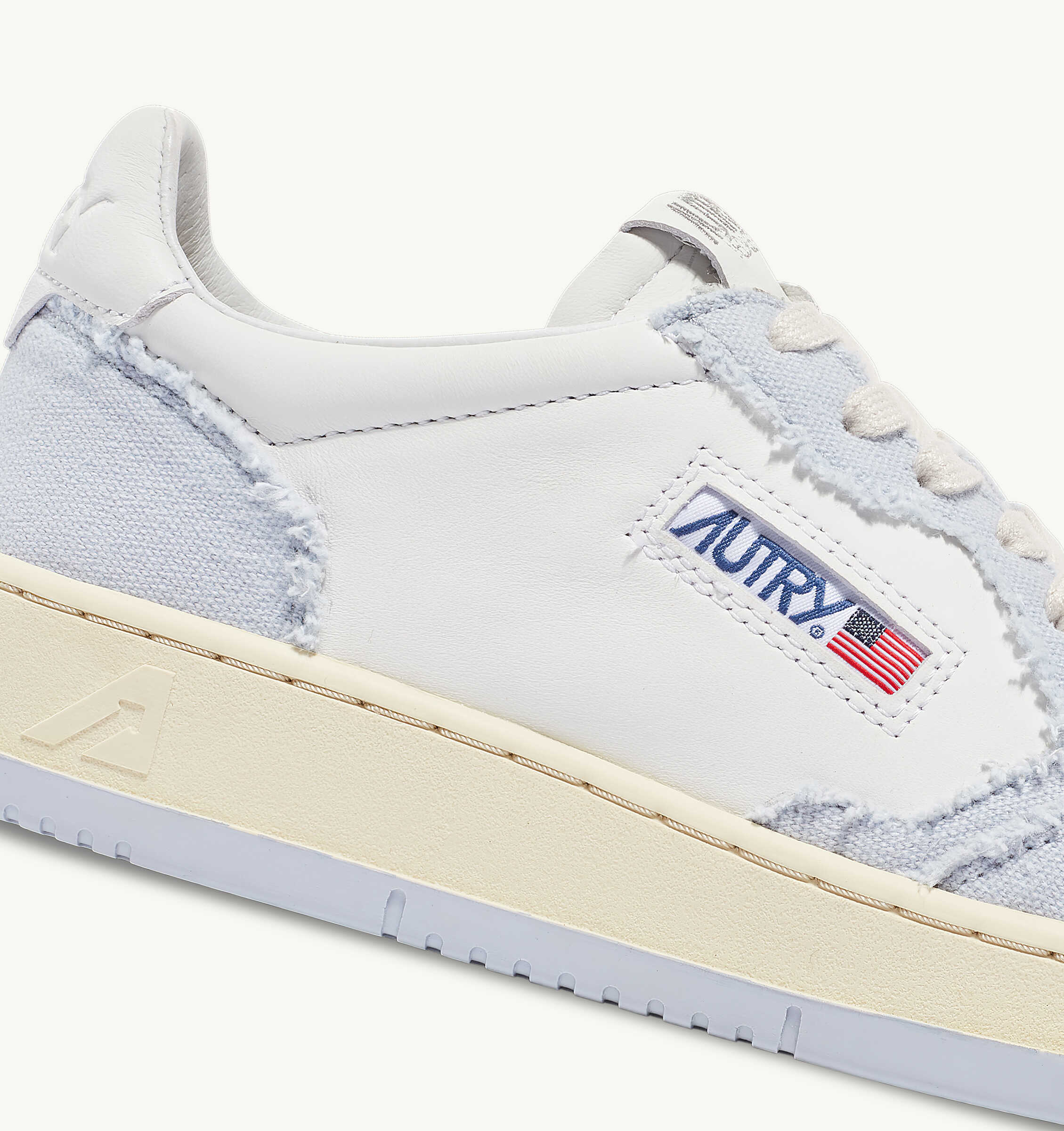 `Leather AUTRY sneakers with fabric inserts, side logo, front perforations, rubber sole.`