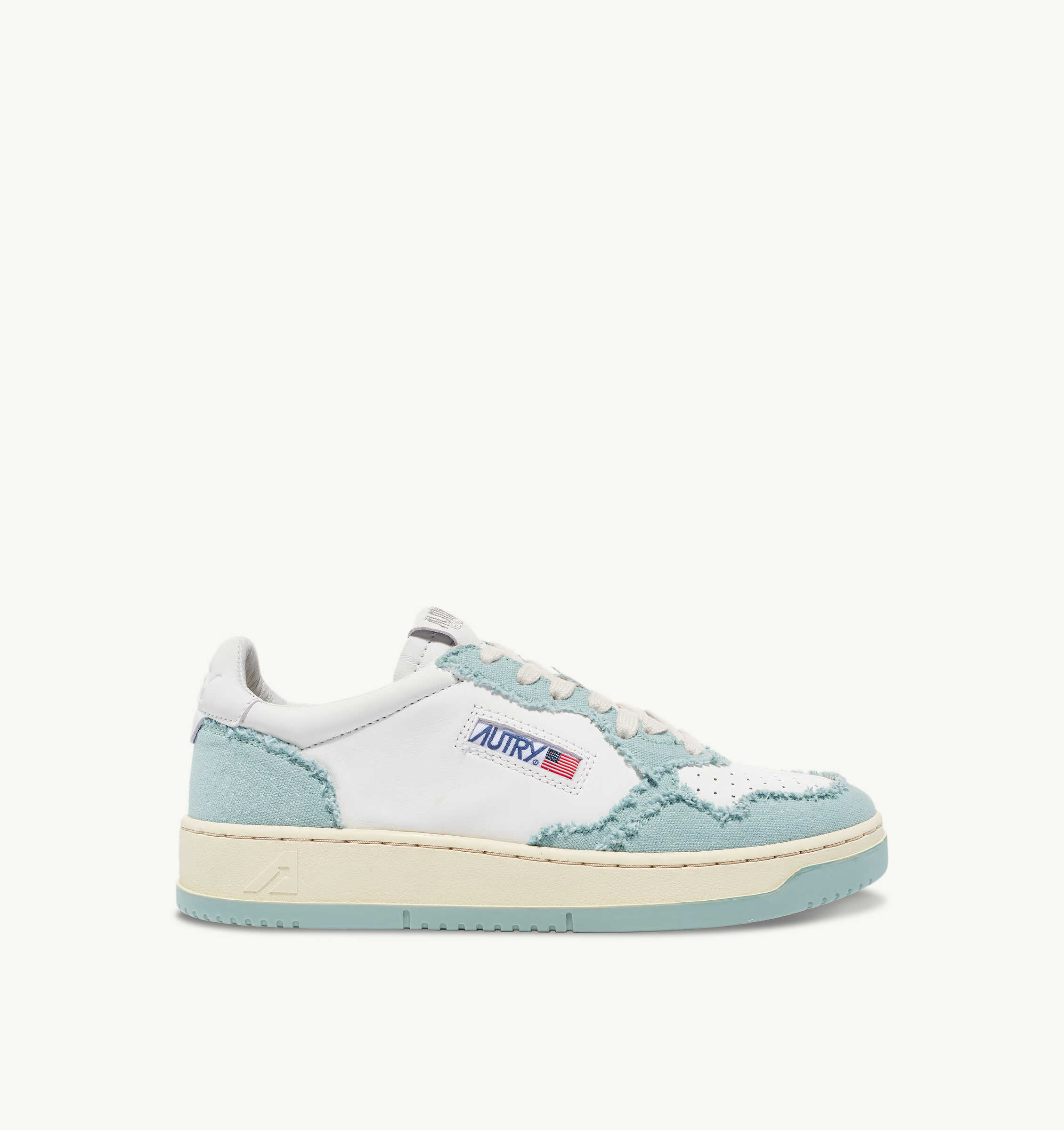 `Leather AUTRY sneakers with fabric inserts, side logo, front perforations, rubber sole.`