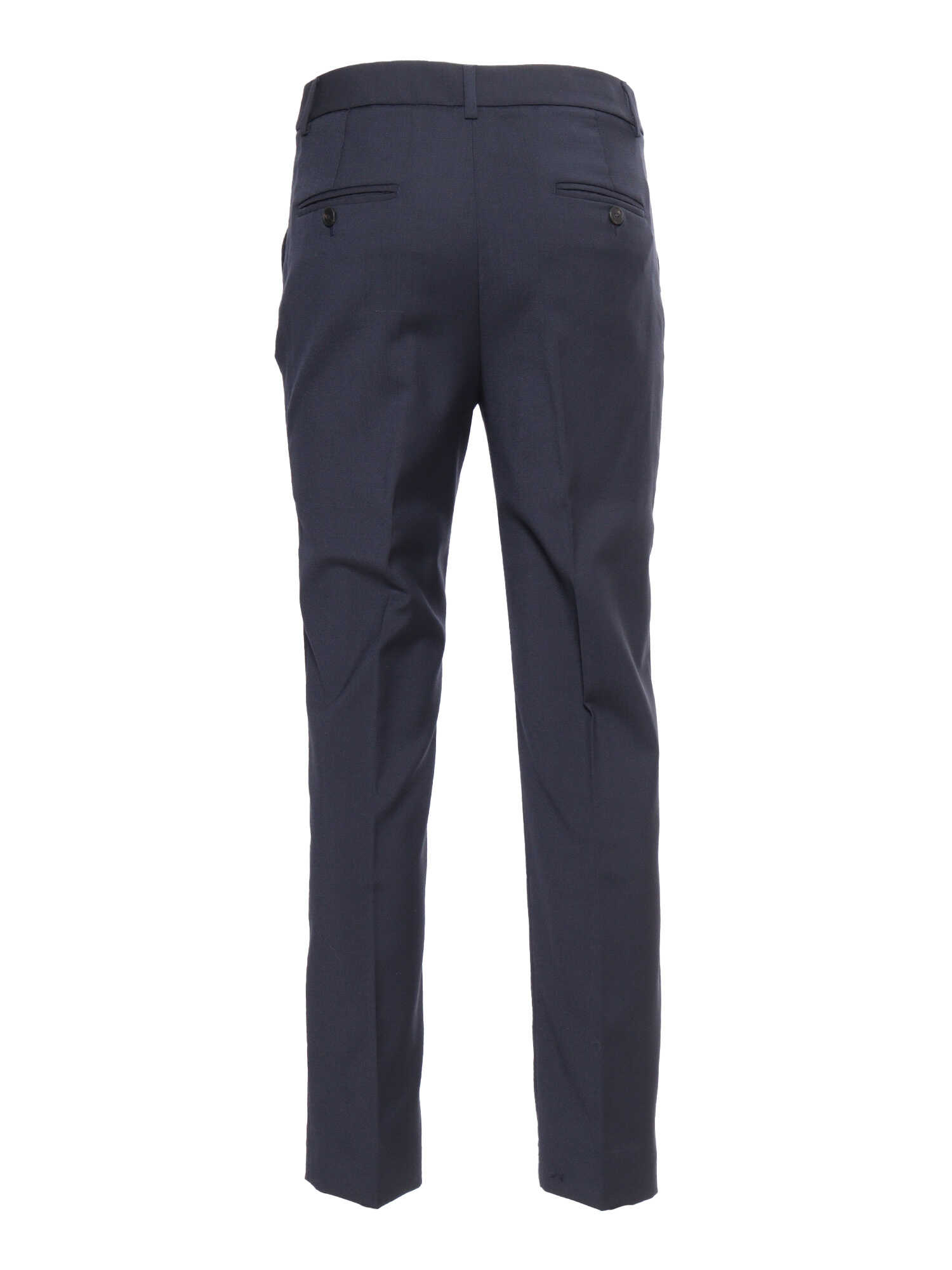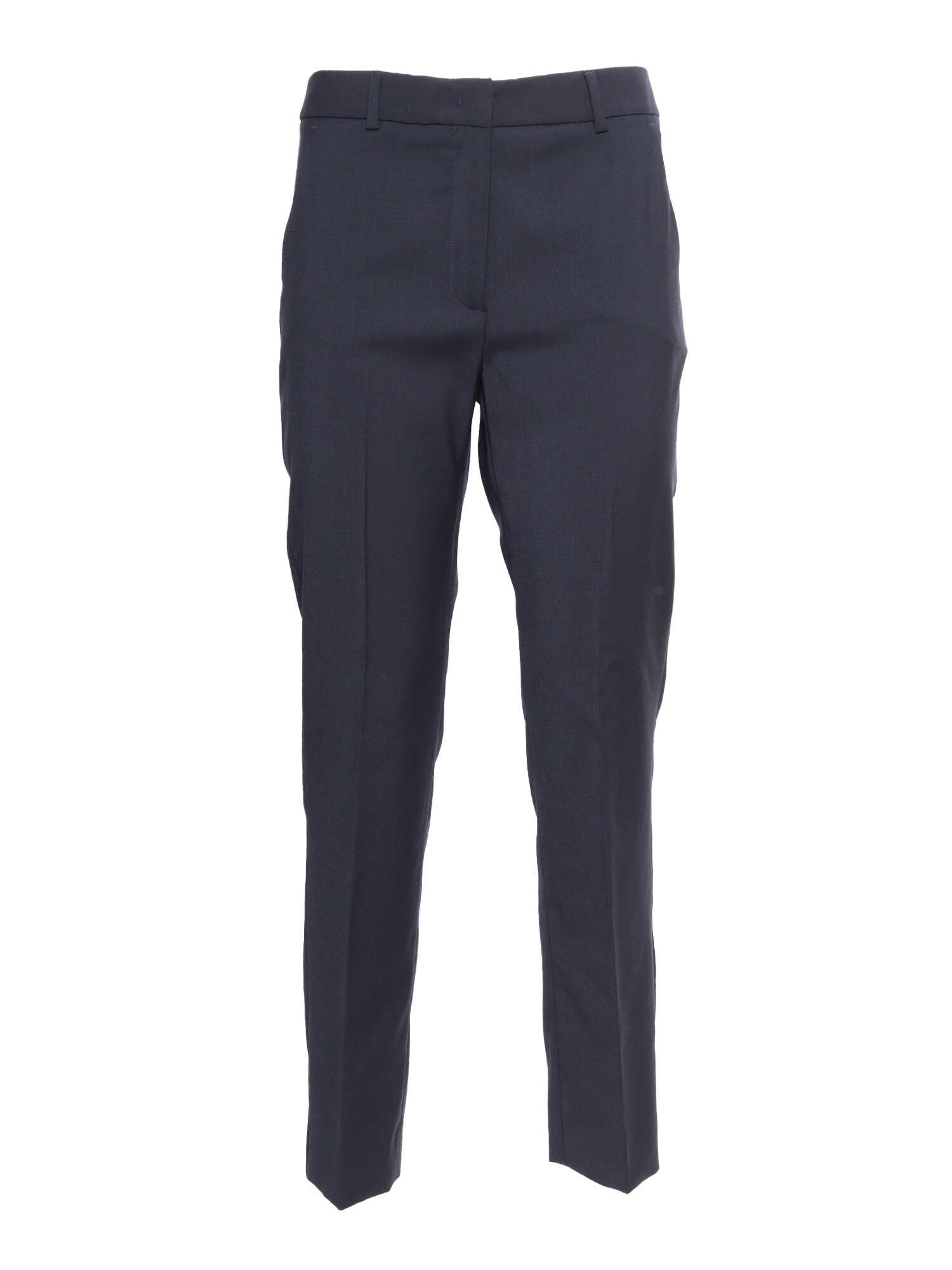 Max Mara Canon elegant blue trousers, slim fit in wool, front zip closure, slanted welt pockets on the front, double welt pockets with button on the back.