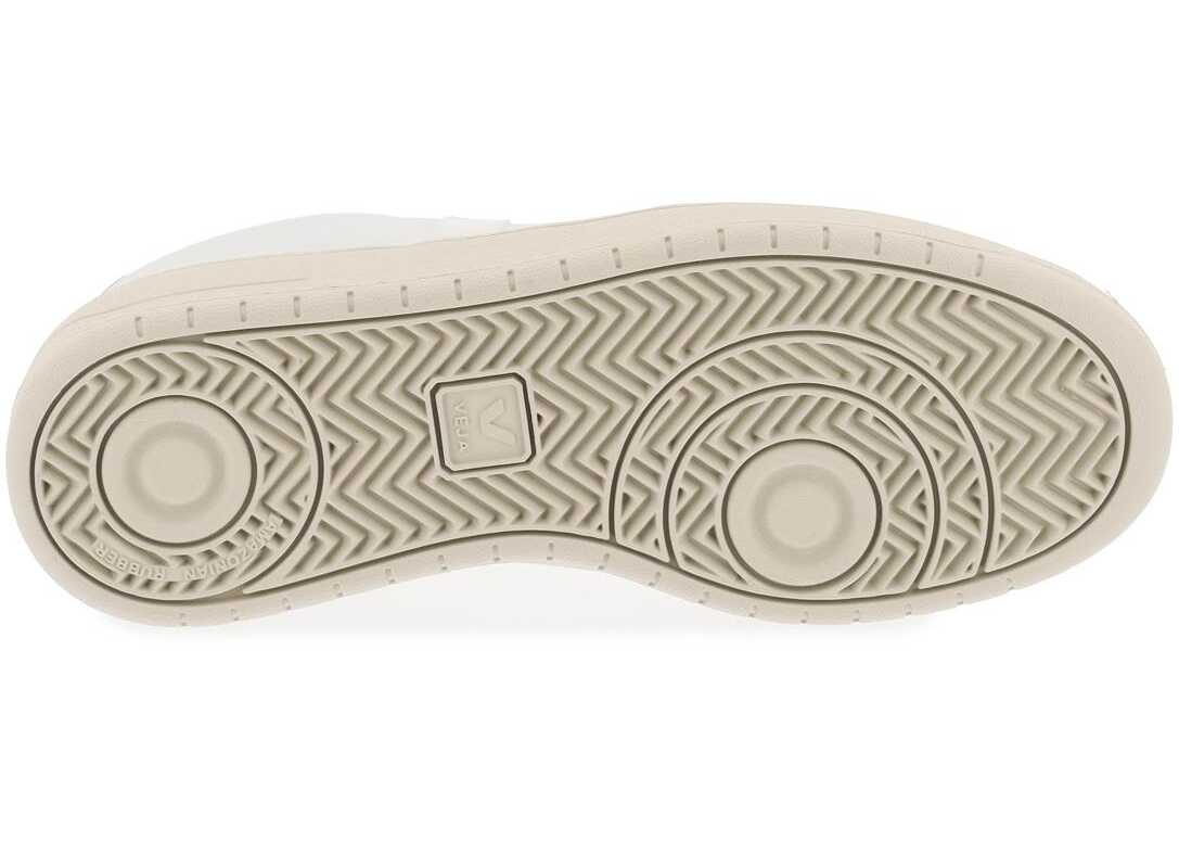 The V-90 sneakers by Veja are made of Organic Traced leather and feature rubber side Vs. They have perforations on the toe, a printed logo on the heel tab and tongue, "V-90" laminated on the side, an eco-friendly fabric lining with a removable insole, and a natural rubber sole sourced from the Amazon Rainforest.