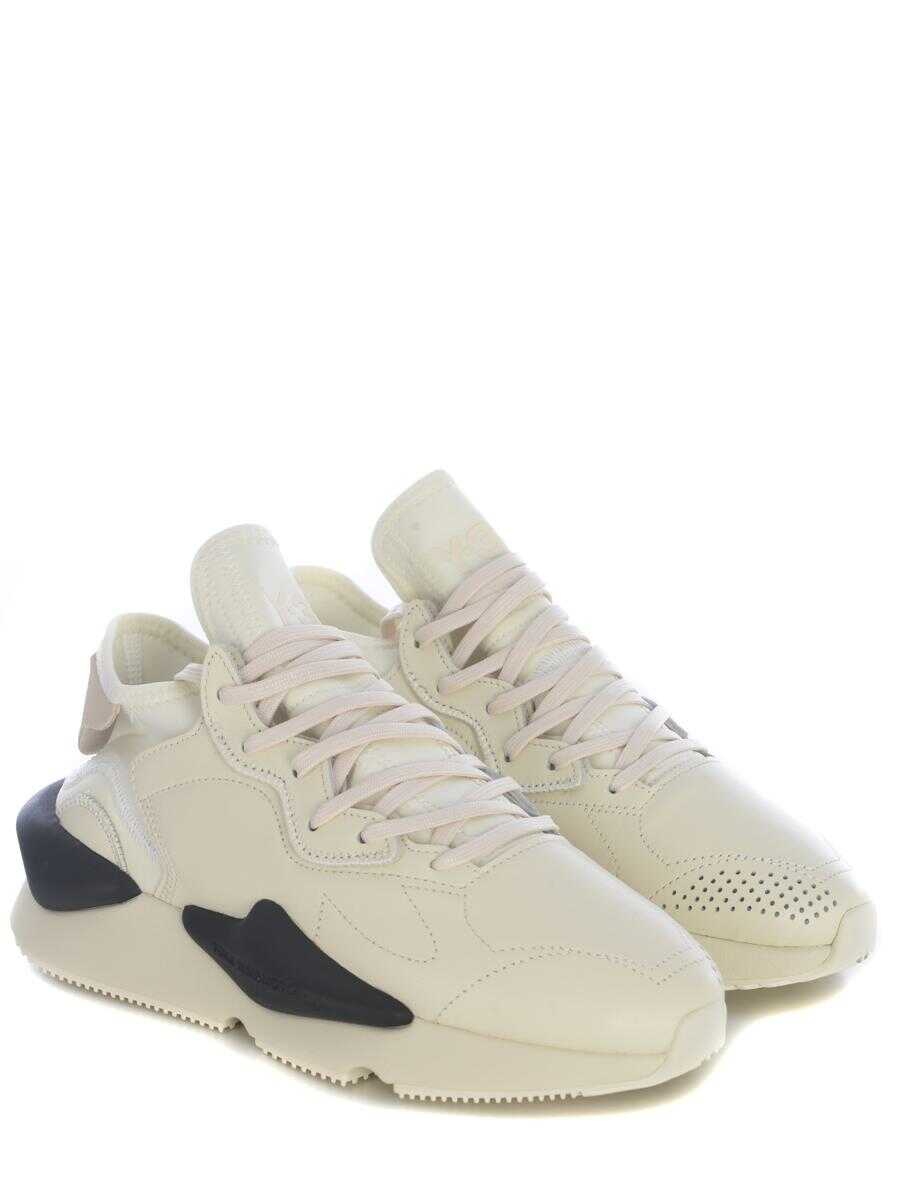 Sneakers Y-3 "Kaiwa" made of Cream leather upper. Neoprene inserts. Round tip. Laced. Cream tone-on-tone laces. Tone-on-tone "Y-3" logo on the tongue. Written on the back. Leather and neoprene lining. Cream rubber sole, inserts a Black color contrast. "Yohji Yamamoto" written on the rubber. Lining