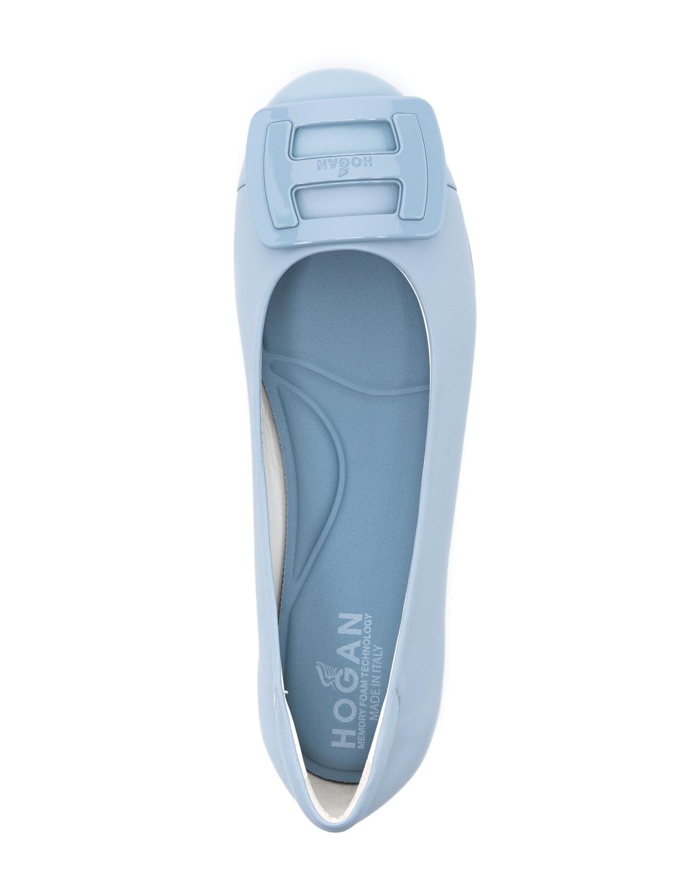 Hogan’s blue leather ballet flats are full of contrasts – from the matte logo plaque at the patent toe cap to the padded ankle and grippy rubber outsole.