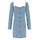 Kitty dress by Stine Goya made of light wash cotton denim, with a monogram pattern. Top in bustier style, with square neckline. Front pockets.