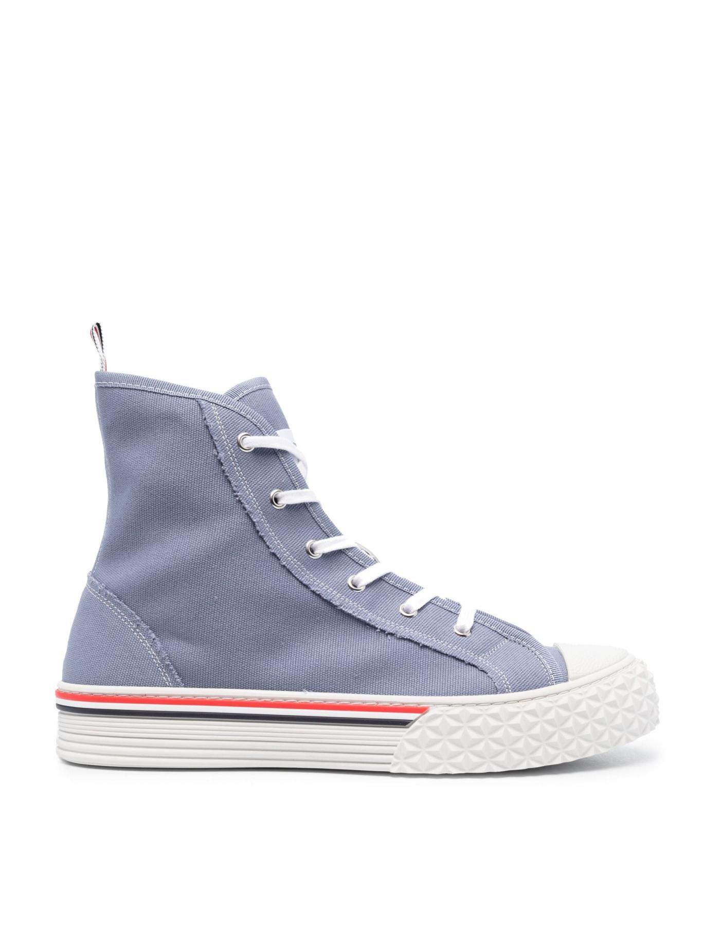 Realised in a breezy sky-blue hue, these sneakers showcase a casual side to Thom Browne. The canvas pair is adorned with the brand's RWB stripe at the sole and heel for a recognisable branded look.