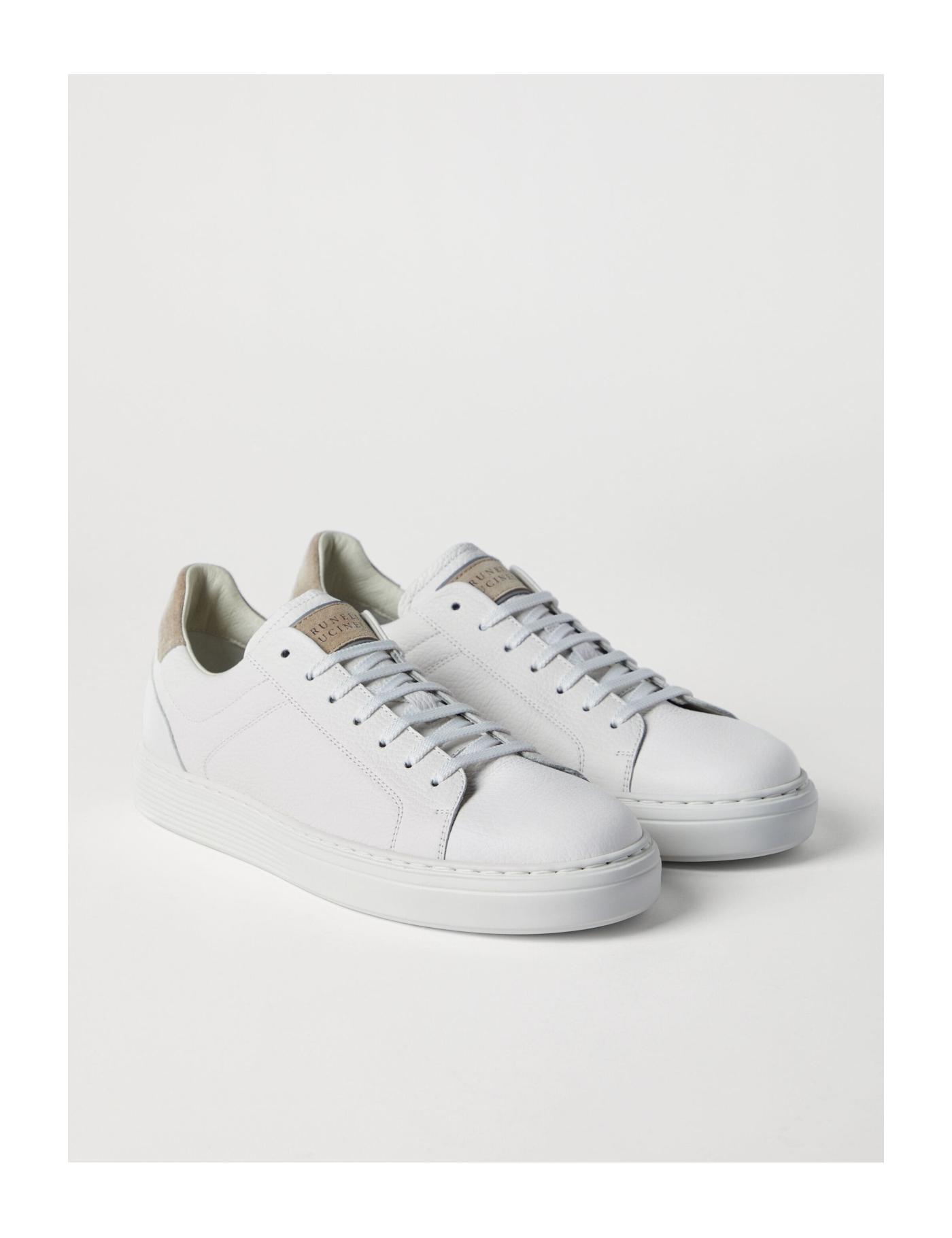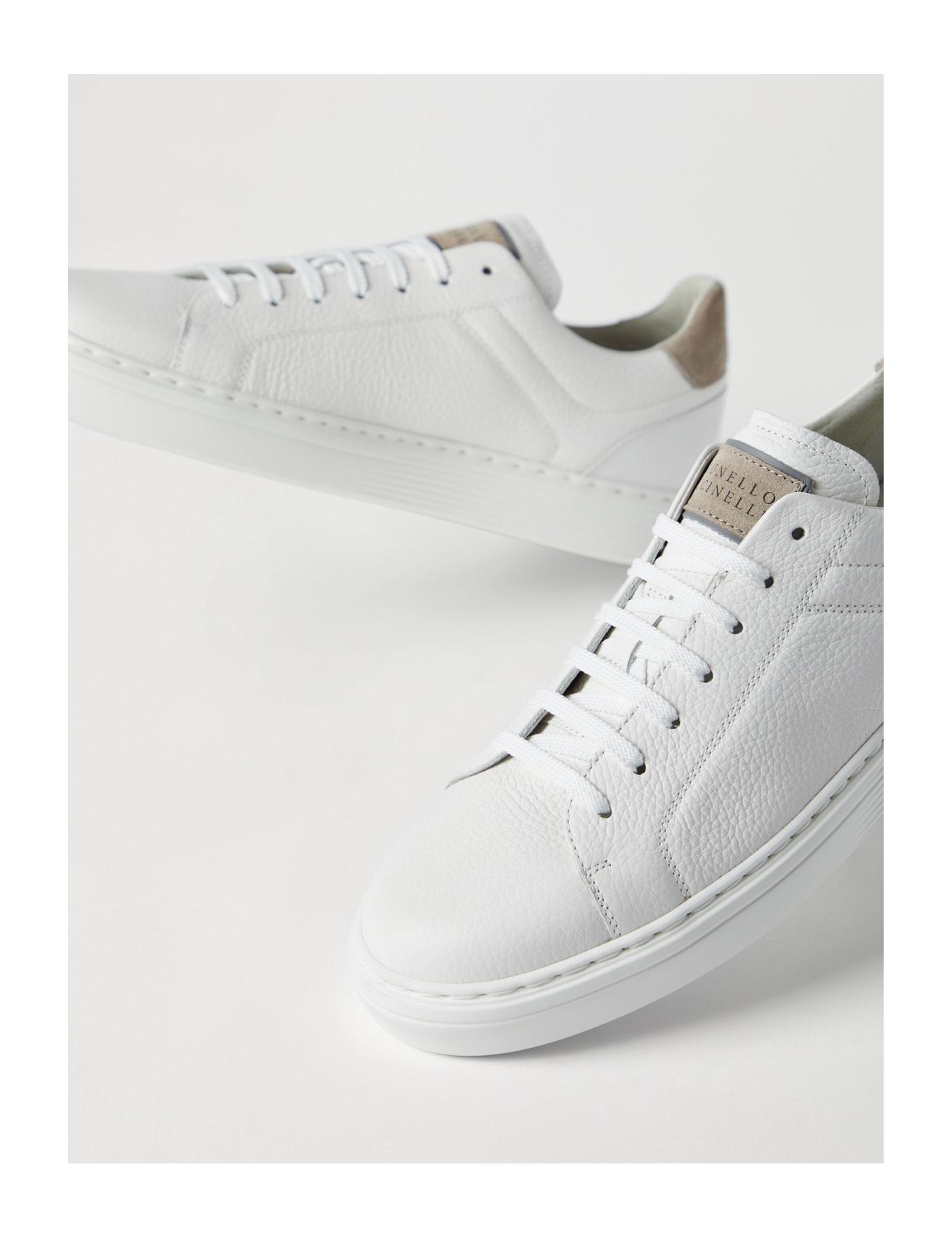 Brunello Cucinelli offers casual minimalism with these sneakers. Crafted from white calf leather, they boast a sleek low-top silhouette and are simply detailed with a contrasting heel counter.