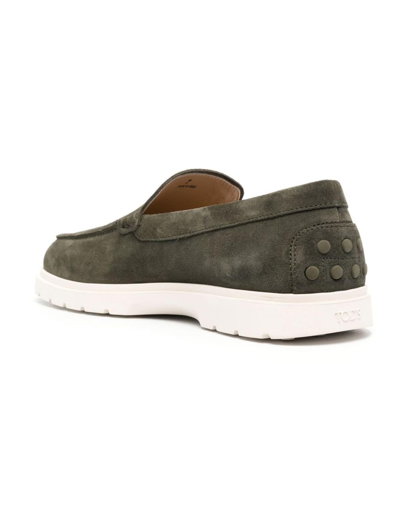 Always presenting timeless designs, TOD'S offers these slip-on loafers. This green pair is crafted from suede and distinguished by the signature rubber pebble detailing on the heel.