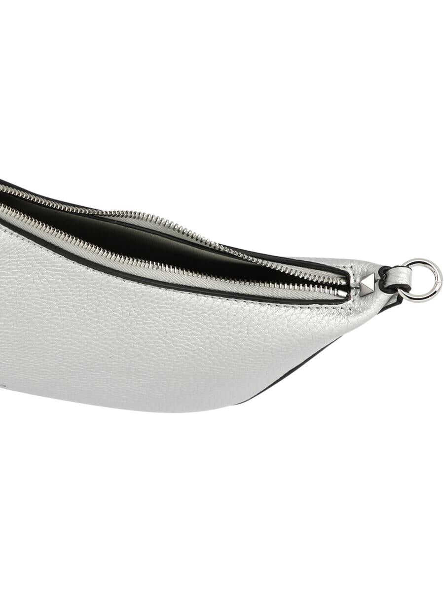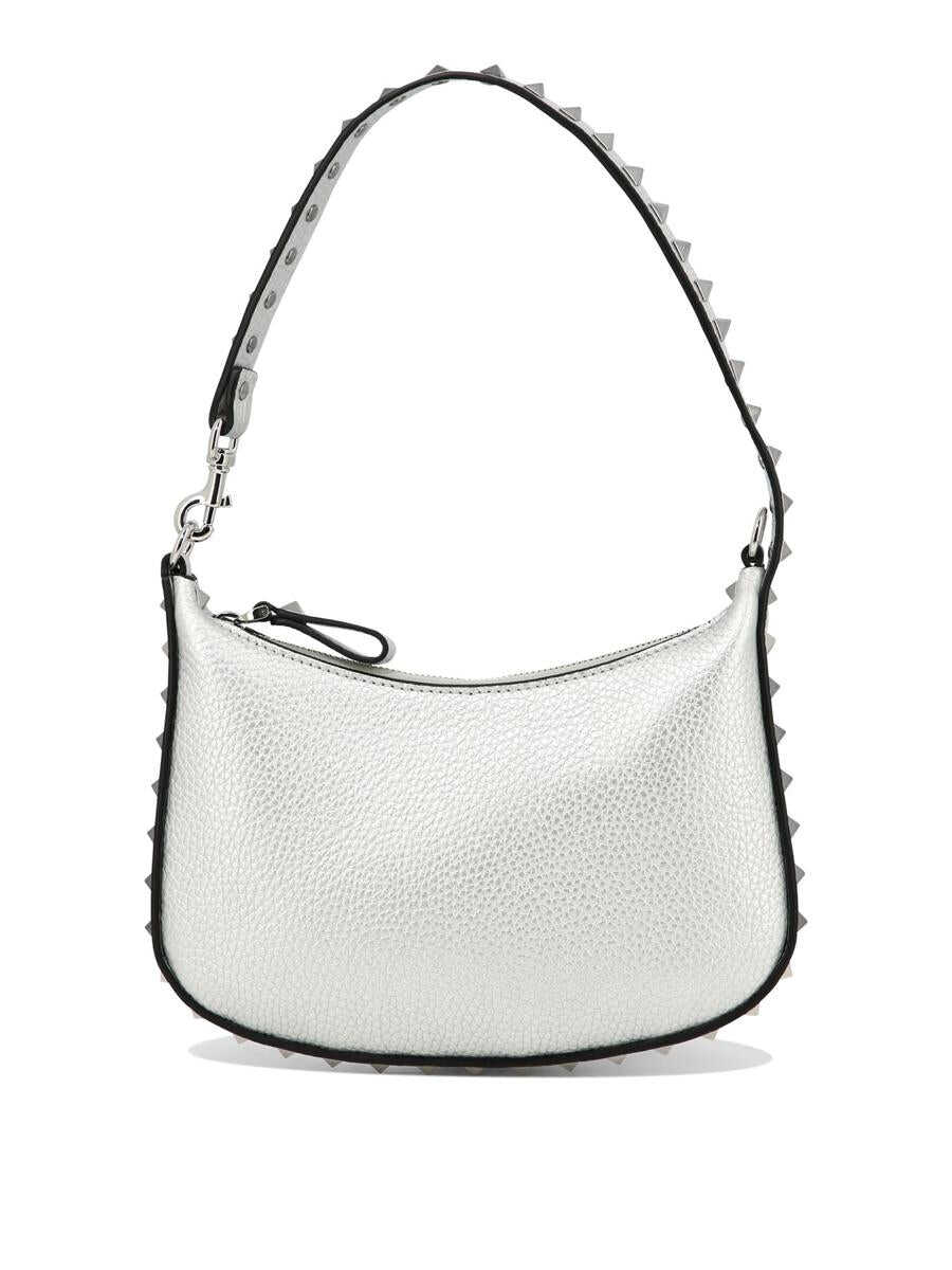 Valentino Garavani's hobo bag crafted in silver-tone grained and laminated leather adorned with signature silver-tone metal studs. Featuring zip closure and top handle with side snap-hook. Grey leather-lined interior with card slot. The design is completed by the unmistakable logo embossed at back.