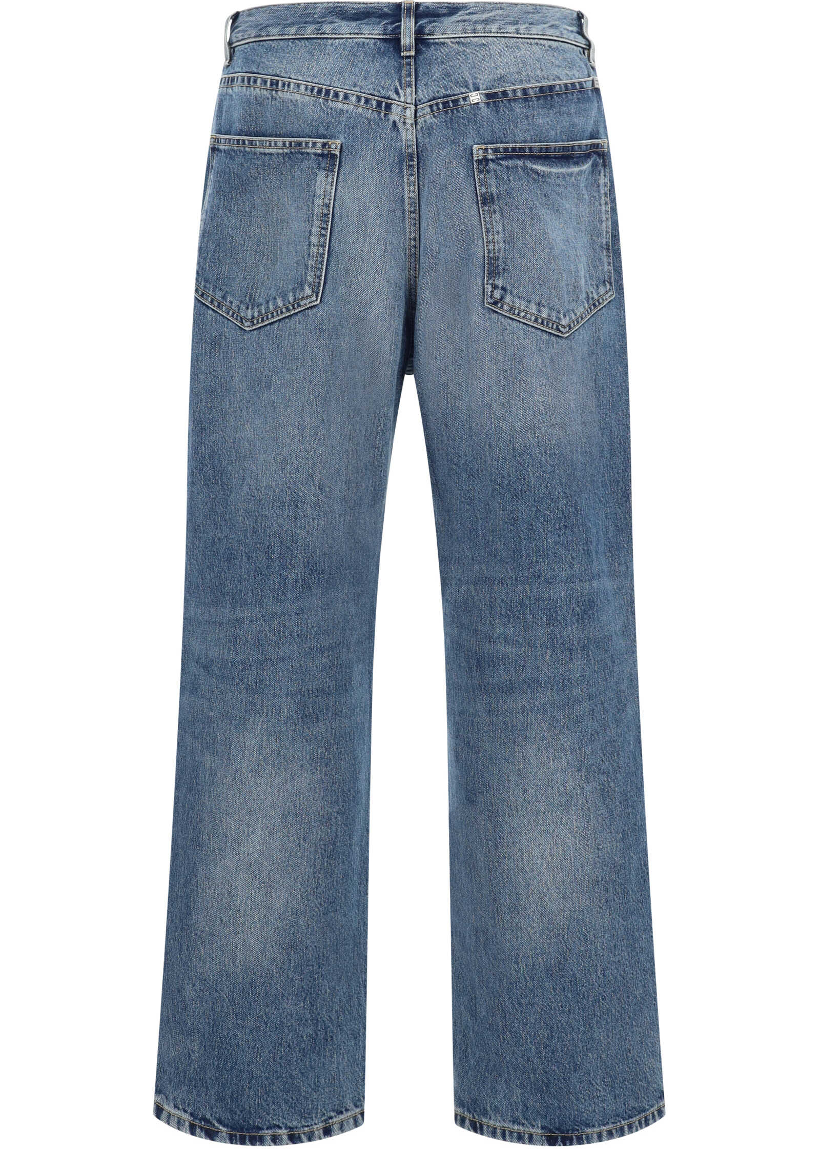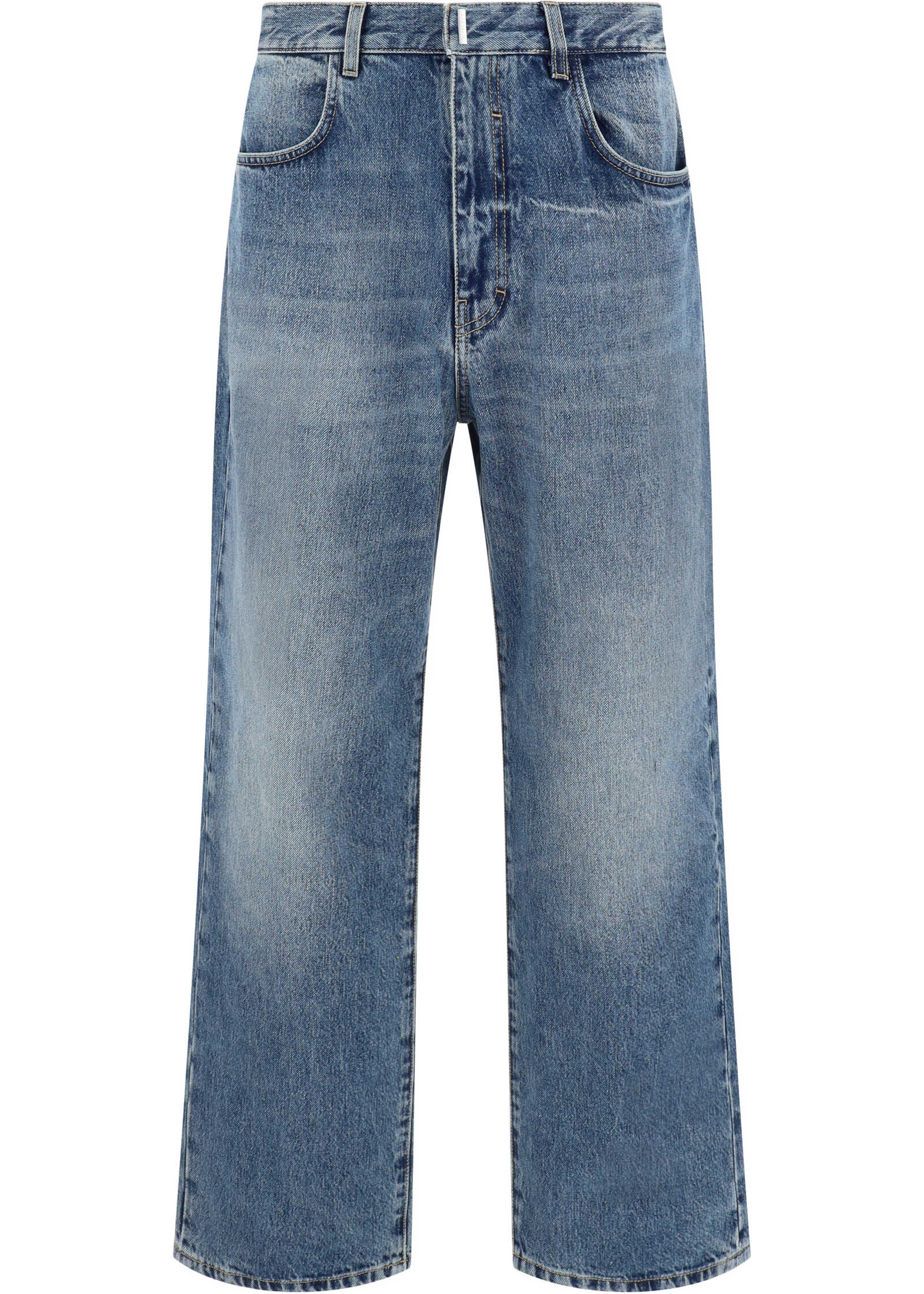 Cotton Jeans by Givenchy, wide-leg five-pocket style, front button and zipper closure, waistband loops.