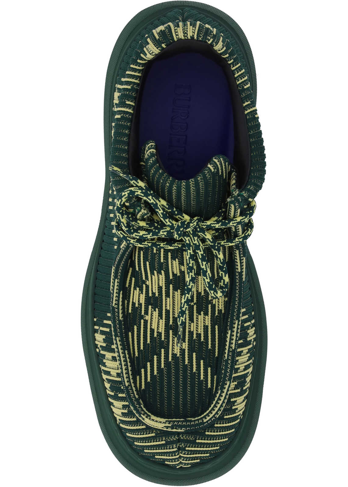 Derby Shoes by Burberry, oversize design, printed fabric upper with iconic all-over Tartan pattern, flat sole, lace-up front closure.