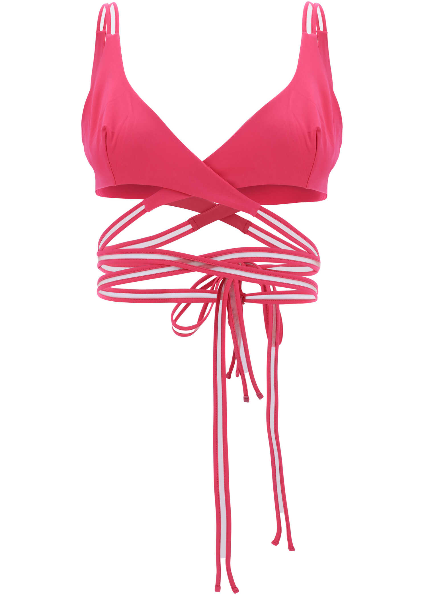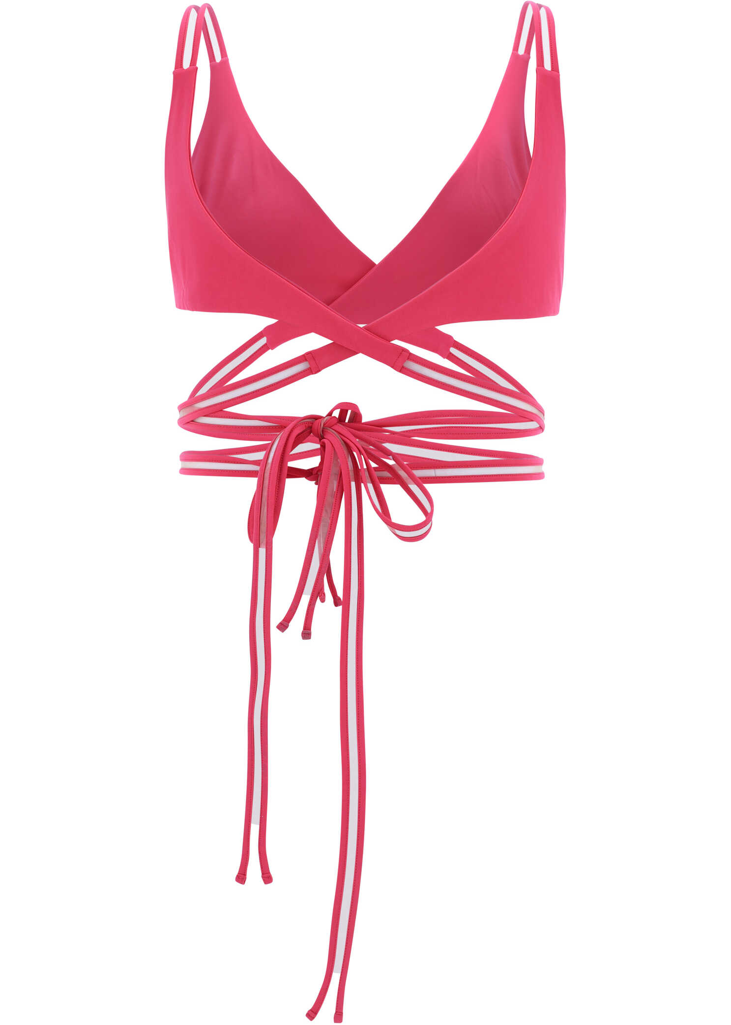 Giunco Top by Exilia, thin shoulder straps, multiple lap back closure to be knotted at will on front or back, crossed back straps, double-breasted design.