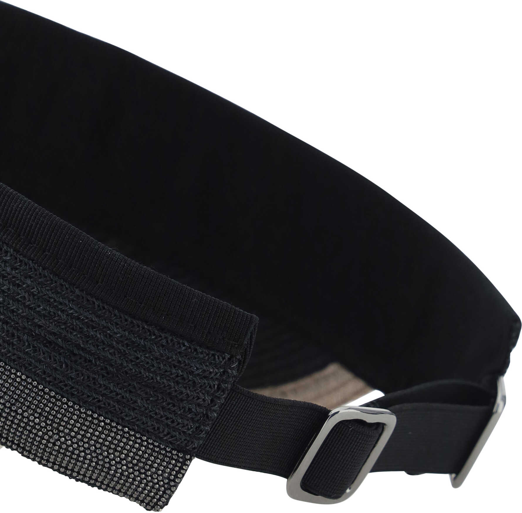Sunny Visor by Bruennlo Cucinelli, adjustable back closure, band with iconic shiny jewels on the front.