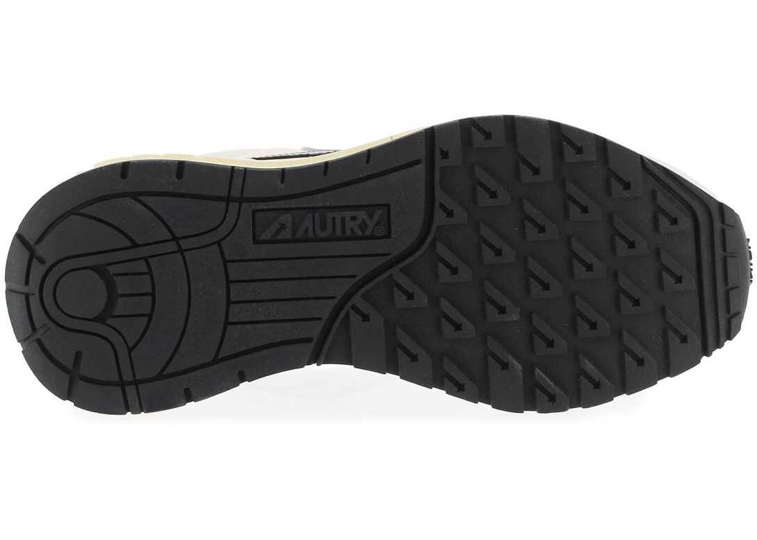 The Autry Reelwind sneakers, with a vintage 80s aesthetic, are made of leather and nylon with iconic brand stripes in contrasting colors on the sides. They feature a logo insert on the side in fabric, an embossed logo on the heel tab, and embroidered branding on the tongue. The interior is lined with sponge and has a removable leather insole, while the ultra-lightweight Phylon rubber sole boasts star-shaped details and an embossed logo. The tread is also in contrasting