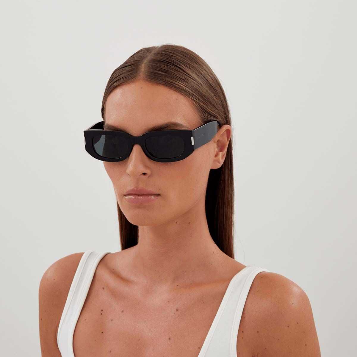Sunglasses Saint Laurent Eyewear Black Black Round Acetate UNISEX