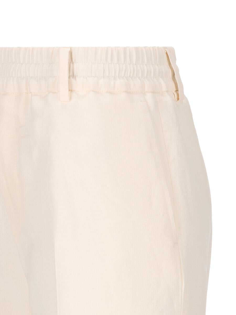 - Material: 69% paper fiber, 31% viscose - Color: white - Other details: elasticized waist, side pouch pockets and buttoned welt pocket on back - Zip closure - Made in Italy - Item code: 8088801A7051 - Regular fit -.