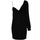Black crepe texture cowl neck single long sleeve with ribbed cuff chain-link detailing with logo plaque straight hem above-knee length rear zip fastening