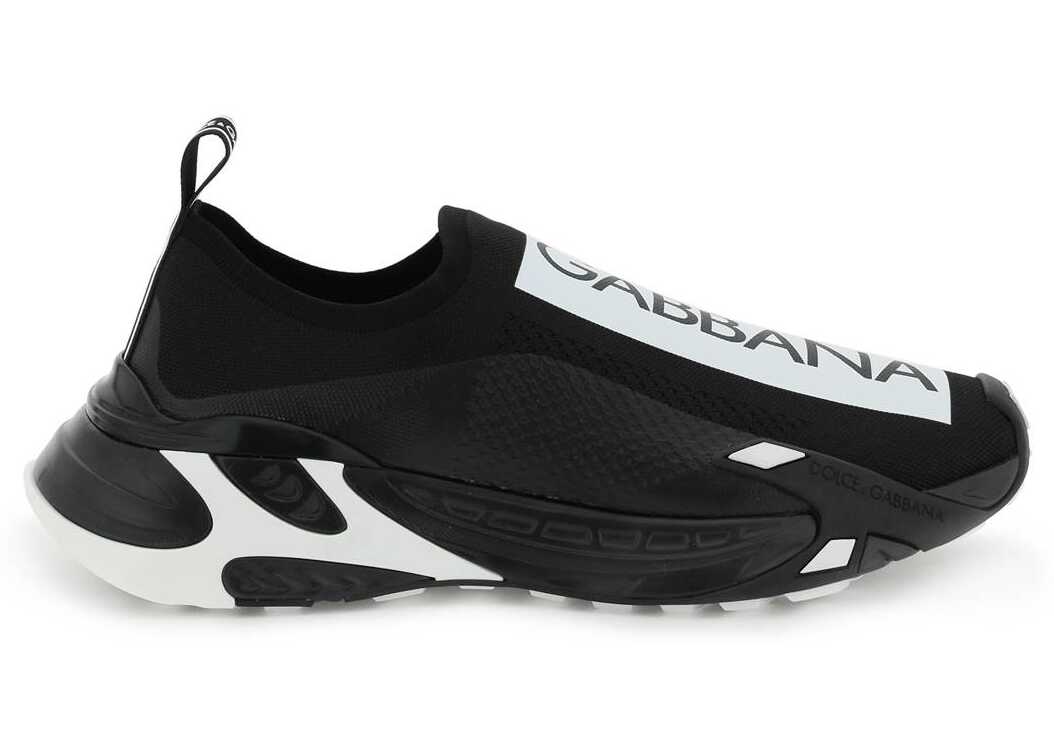 Dolce & Gabbana stretch knit sock Sorrento slip-ons with rubber logo insert on the front and branded tape loop-tab on the back. Fabric lining with removable insole, rubber base and contrast decorative rubber plugs.