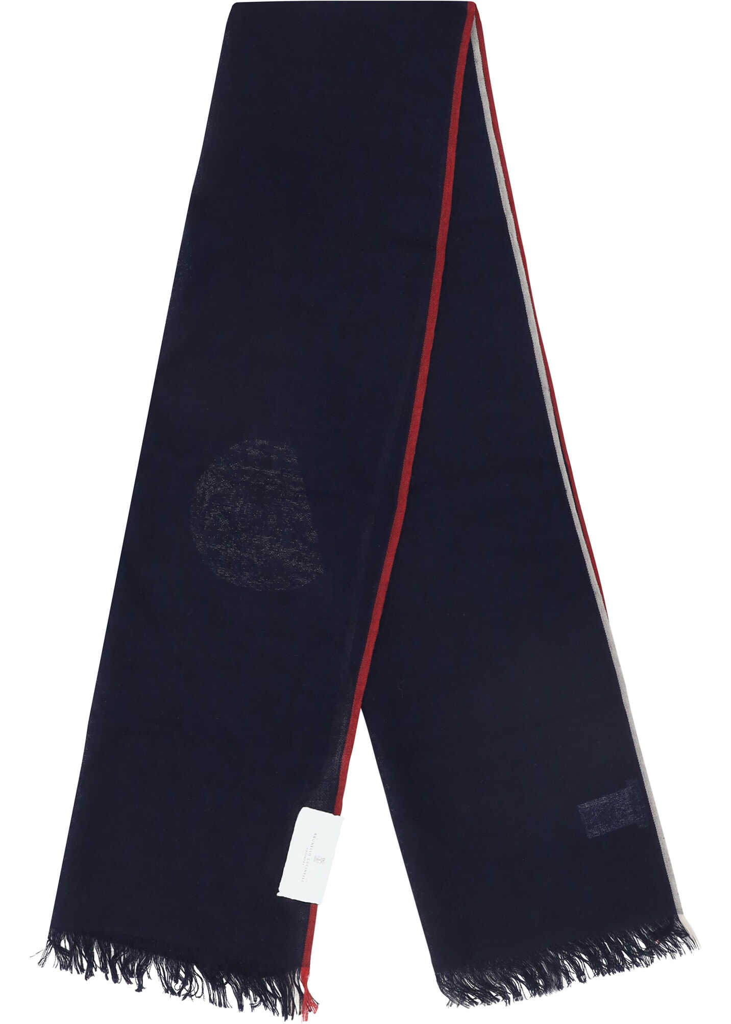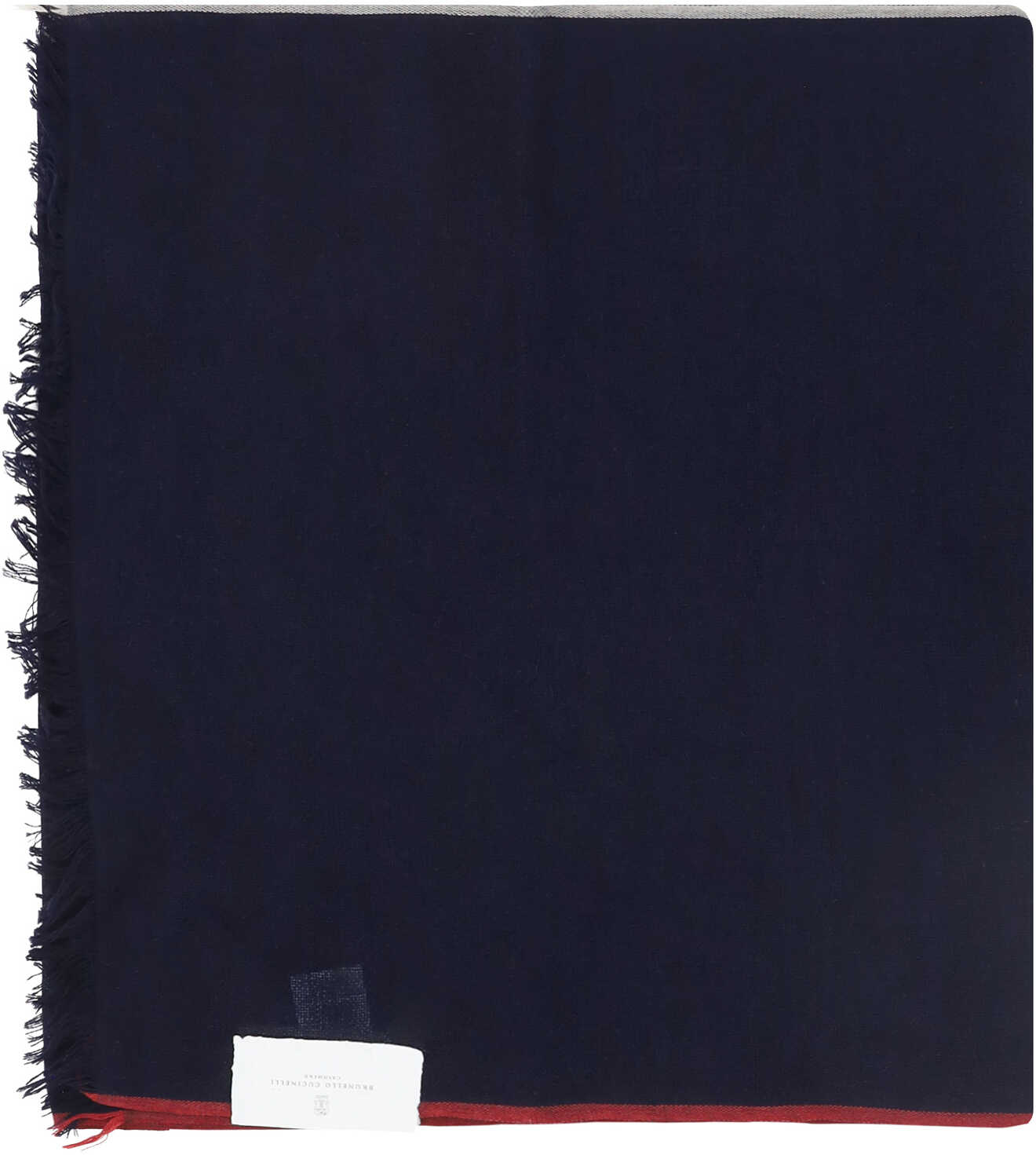 Cashmere-silk blend Scarf by Brunello Cucinelli, iconic brand signature embroidered on the edge, seamless frayed hems.