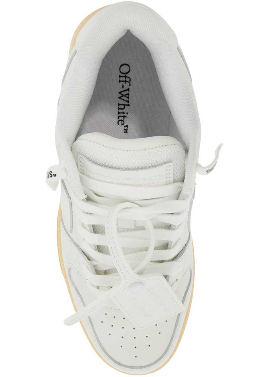 The Off-White Out Of Office sneakers are made of smooth leather with the iconic side Arrow. They feature a golden logo lettering on the spoiler, a padded tongue in technical fabric with a leather logo patch, a removable Zip Tie tag in leather, and perforated toe cap. The interior is lined with fabric and has a removable insole, while the contrasting rubber sole adds a touch of style. Replacement laces are also included.
