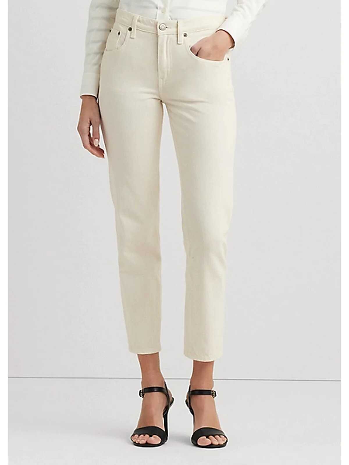 LAUREN RALPH LAUREN five-pocket ankle straight pants, zip and button closure, belt loops, logo emblem on the back.