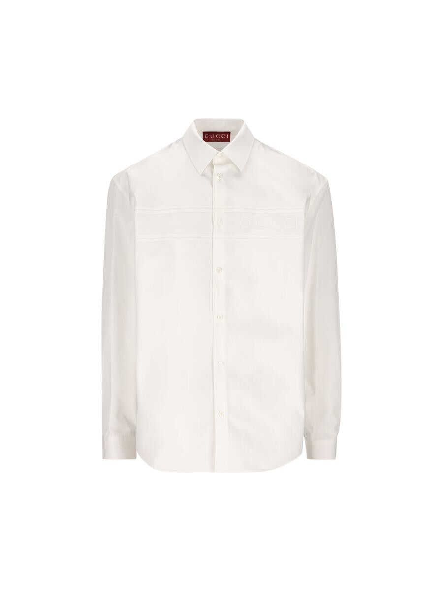 - Material: 100% cotton - Color: white - Other details: Gucci lettering on front - Button front closure - Made in Italy - Item number: 784019ZAQQU9000 - Regular fit -.
