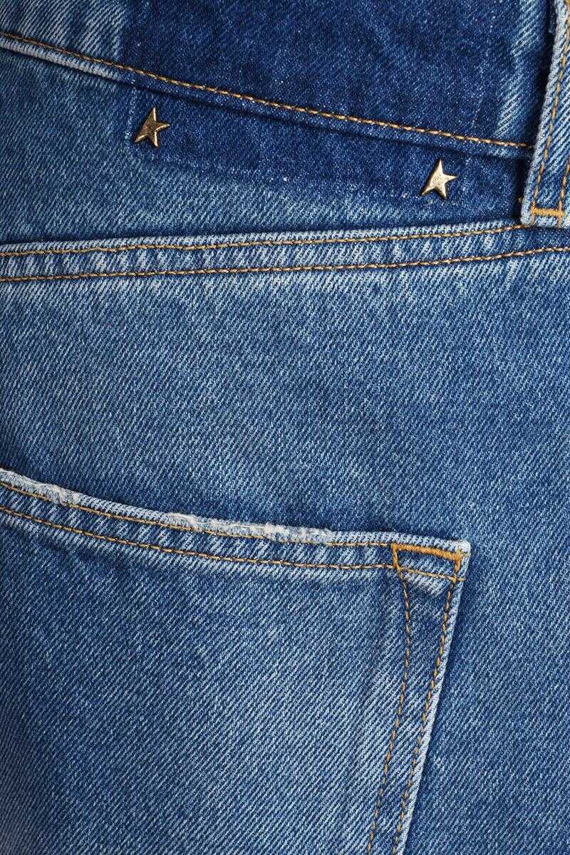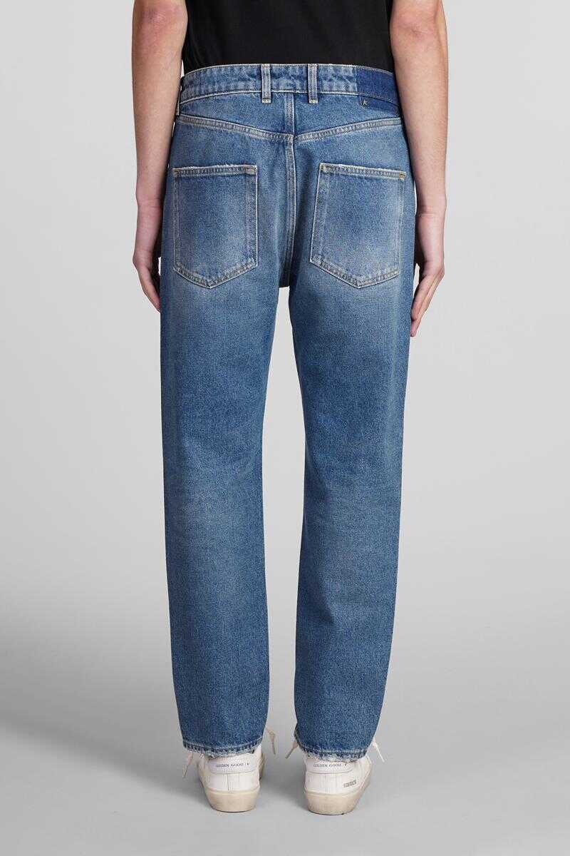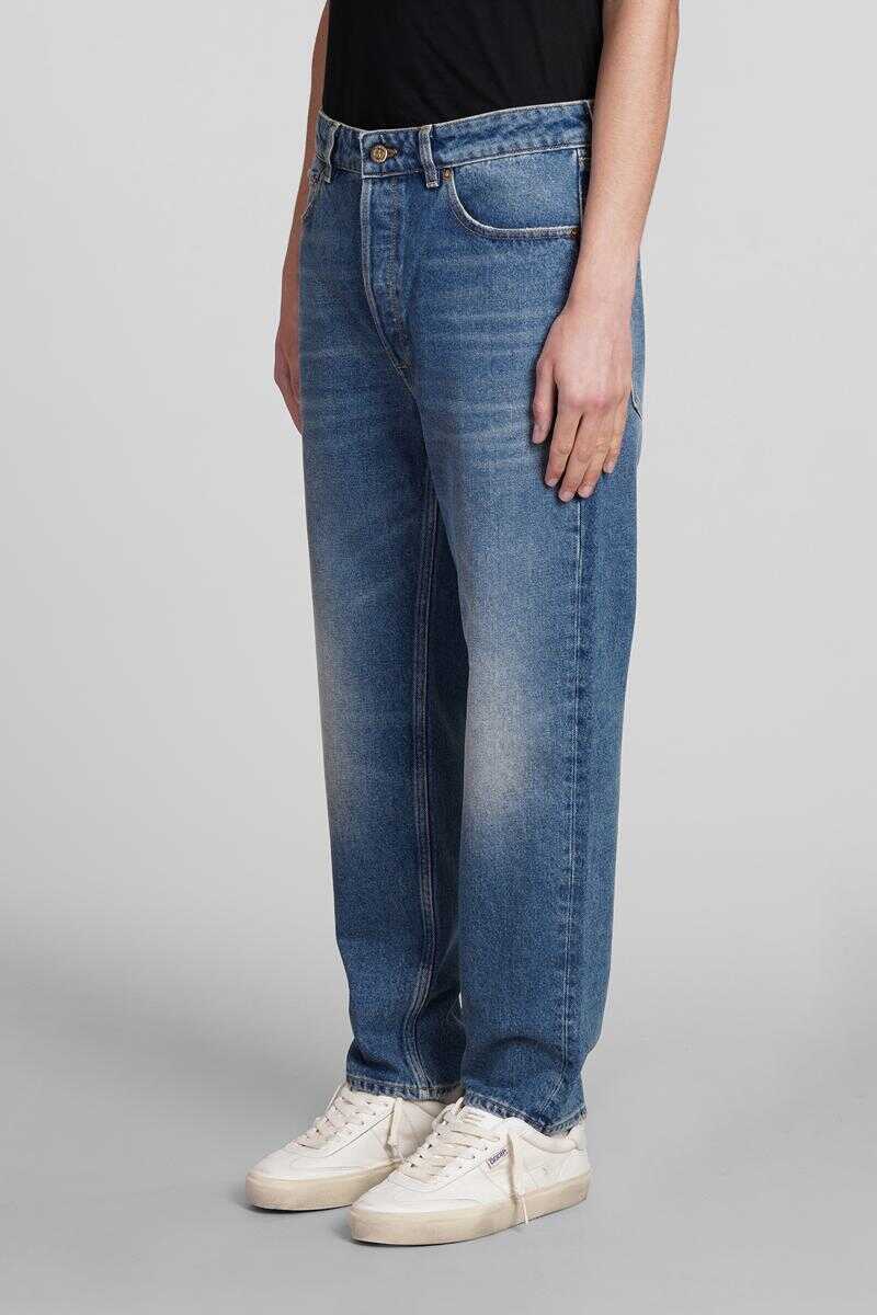 Jeans in cyan denim, button and zip closure, waist belt loops, five pockets, 100% cotton, Made in Italy