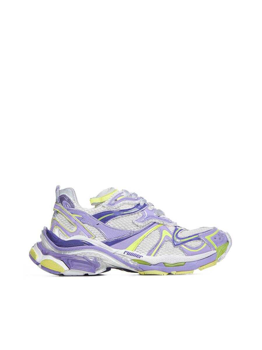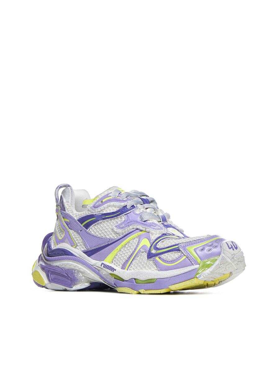 lilac purple/fluorescent yellow multi-panel design distressed finish mesh panelling logo patch at the tongue logo patch to the front logo print to the side printed size at the edge of the toe debossed size at back branded heel counter pull-tab at the heel front lace-up fastening round toe branded insole chunky rubber sole