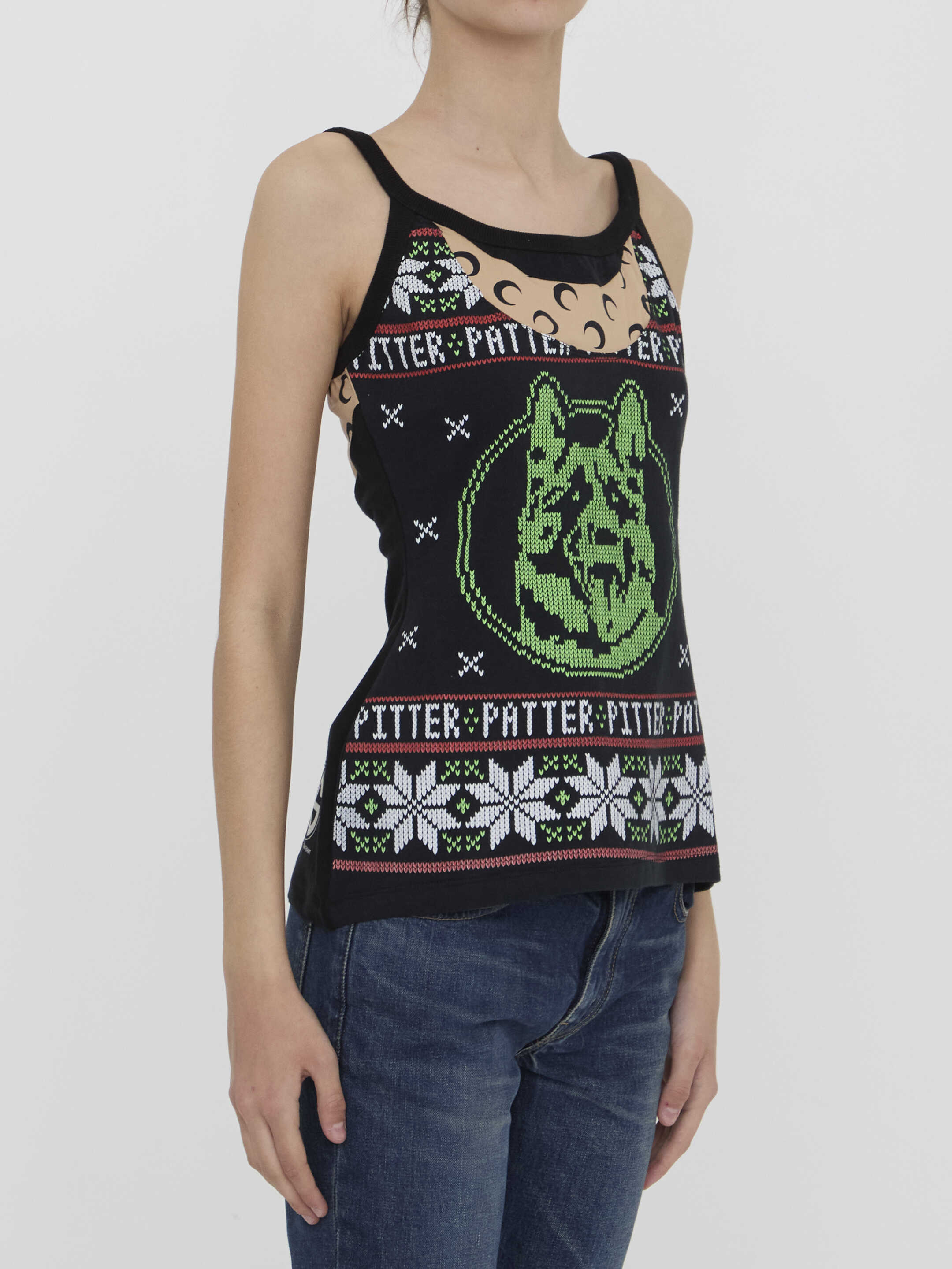 Tank top in regenerated cotton jersey with panelled design and All Over Moon inserts. It features ribbed trims and Marine Serre Regenerated logo at the back. Regular fit.