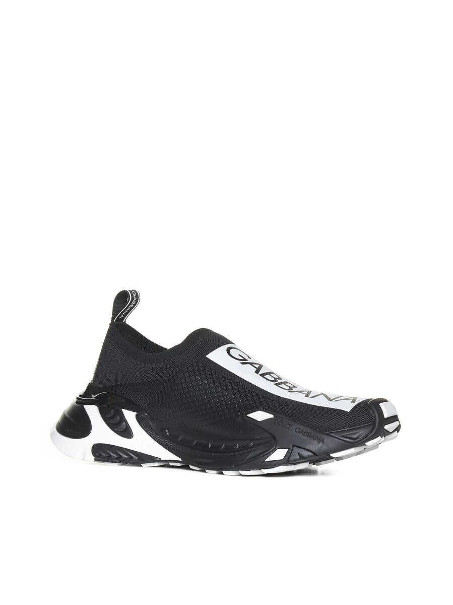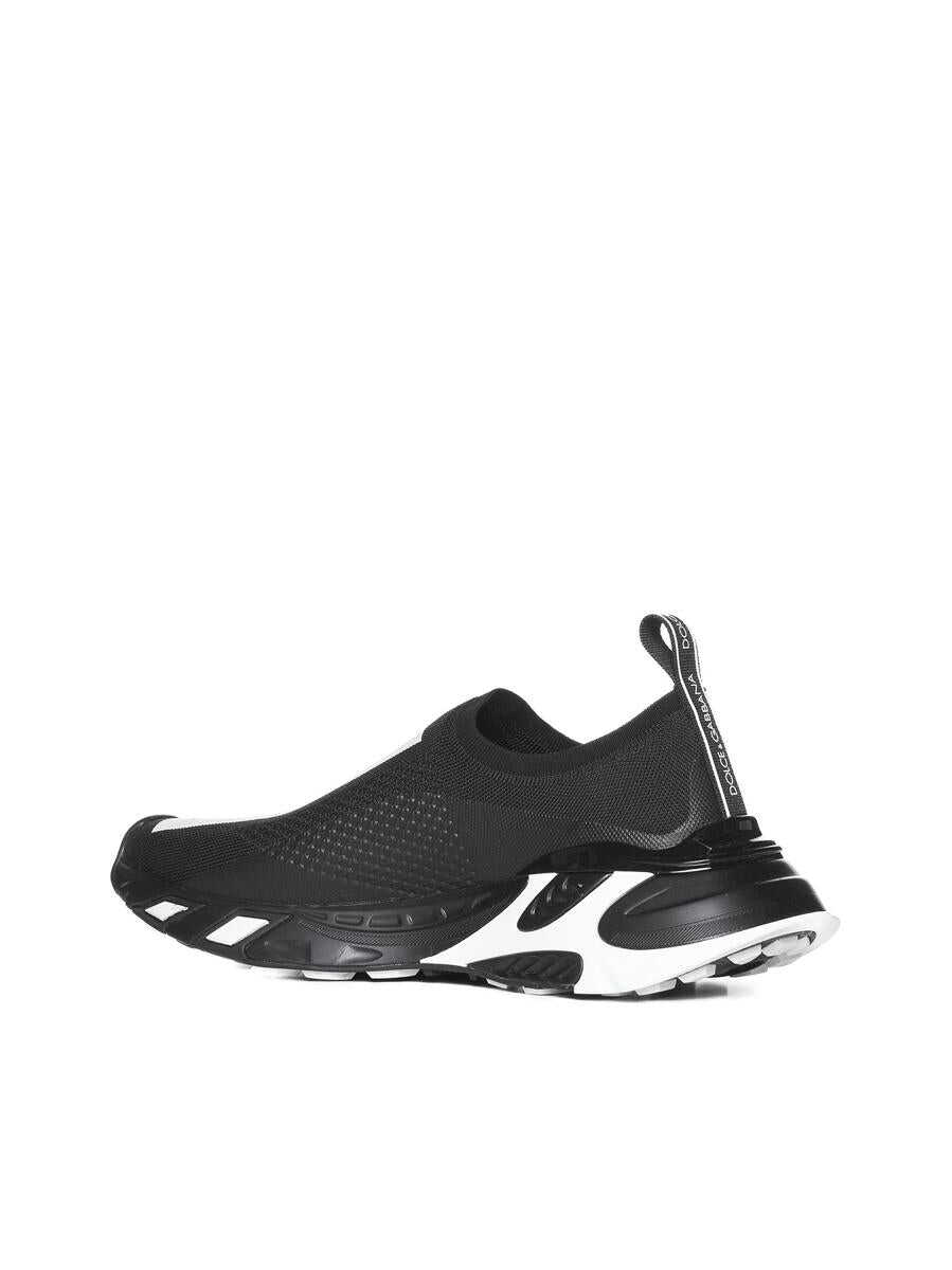 Dolce & Gabbana's Sorrento black and white mesh slip-on sneakers featuring logo printed on the front and on the heel loop tab and chunky two-tone rubber sole with logo embossed on the side.
