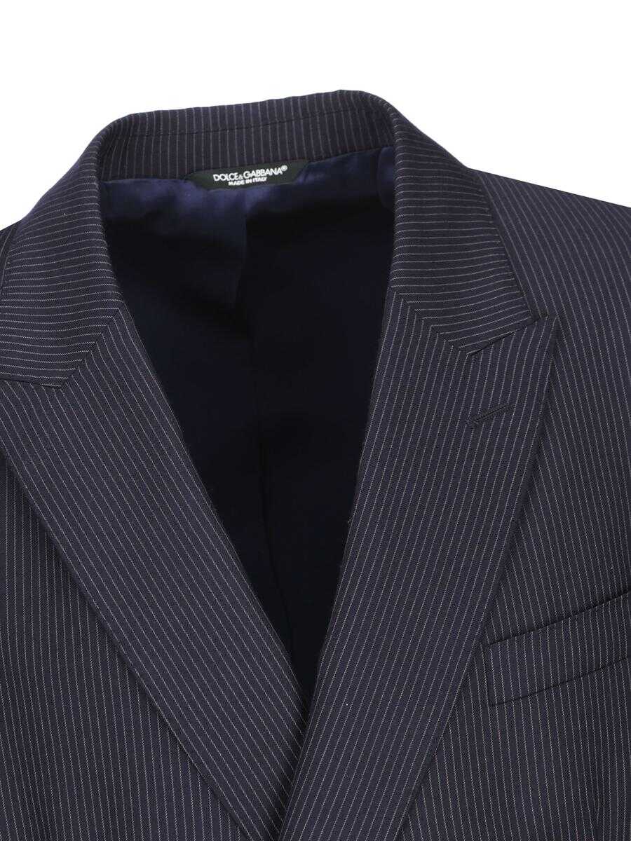- Material: 100% virgin wool - Color: blue - Lined - Other details: all-over stripe pattern - Jacket closure: button - Trouser closure: button and zipper - Made in Italy - Item code: GK7SMTFR20GS8051 - Regular fit -.